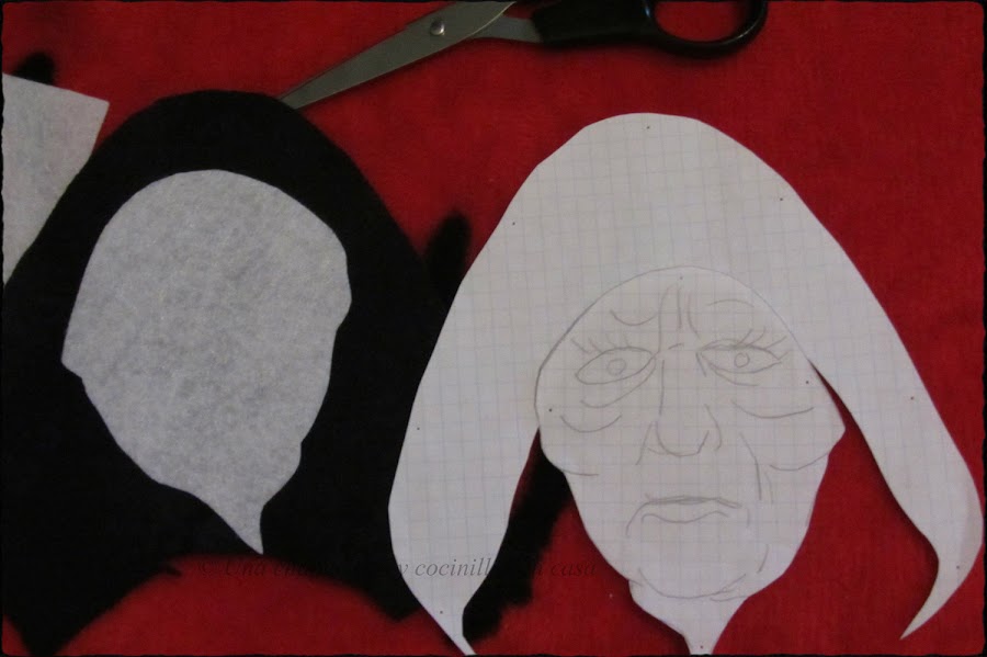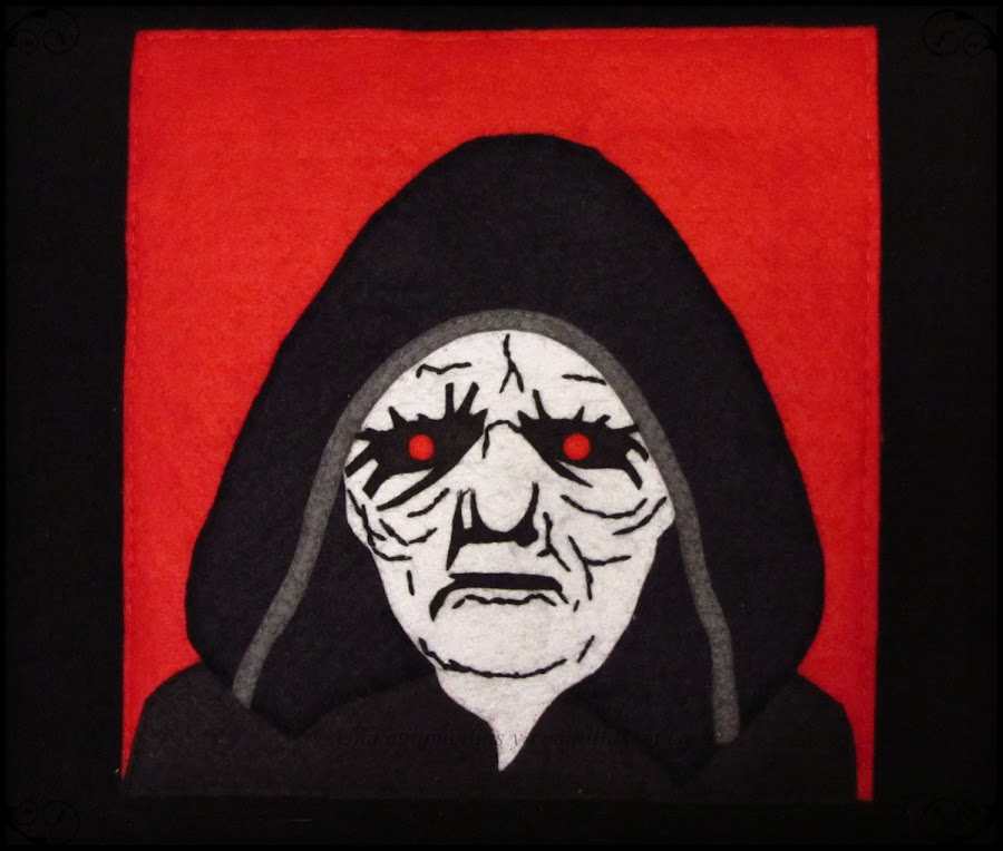Ahora vamos con Palpatine, primero como siempre el boceto. No me esmeré demasiado en el dibujo (parece la típica vieja del visillo XD) pero con que me sirva de referencia para hacerme una idea y luego recortarlo en el fieltro, pues suficiente.