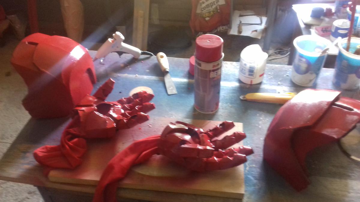 Aún estoy pendiente de comprar el resto de luces y de hacer las corvas con algo de goma eva fina, pero eso será algo rápido. He de comprar sin falta ropa de color rojo muy fina que me pueda colocar para ponerme la armadura.