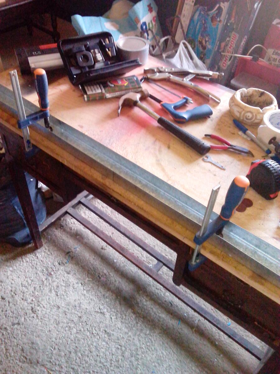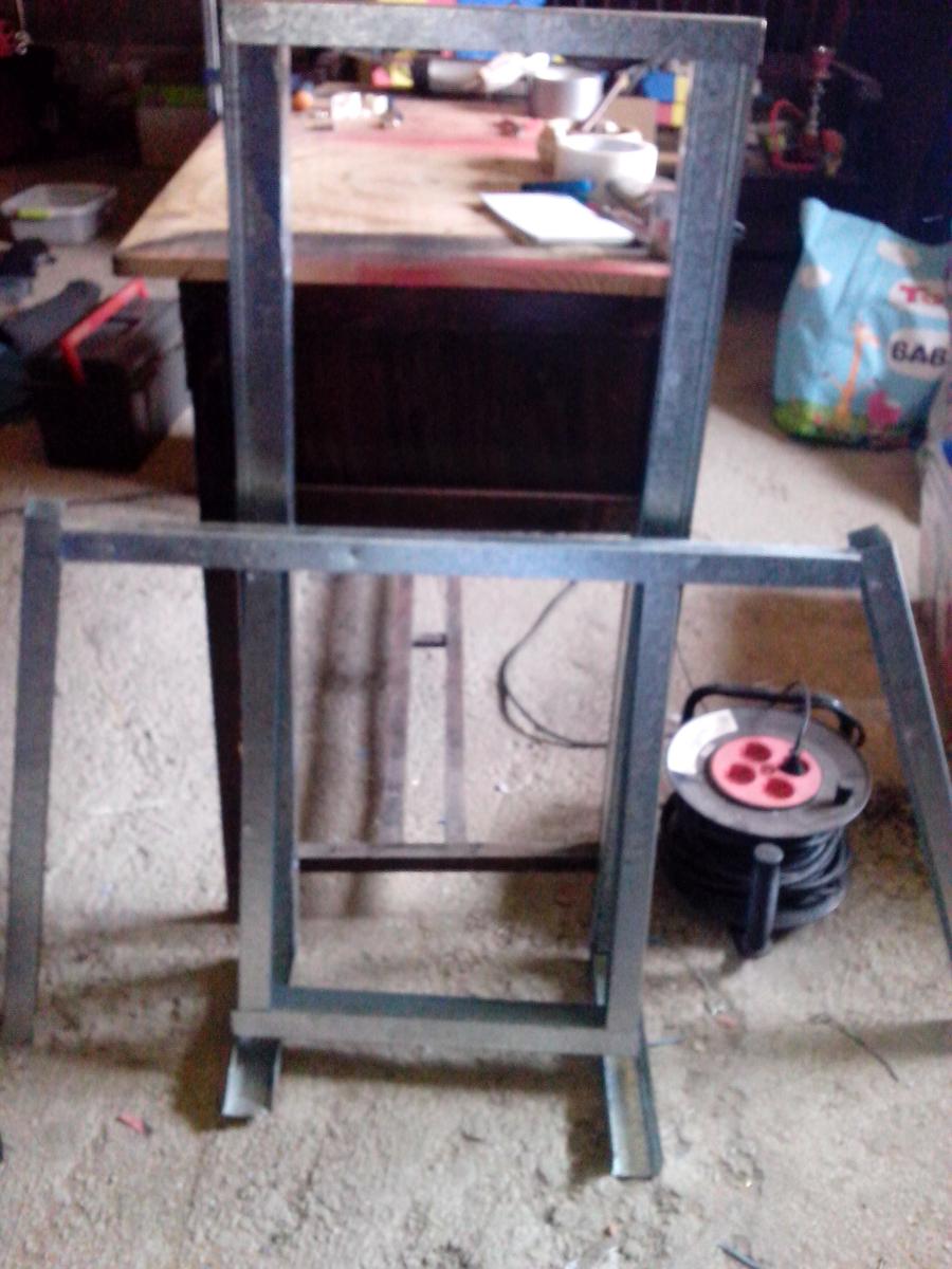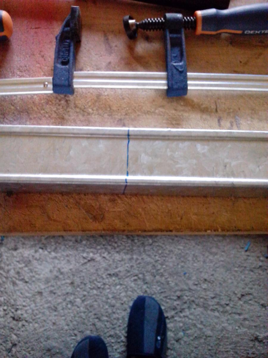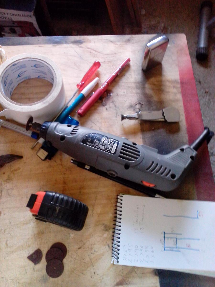 Al principio pensé en sólo doblarlos por donde era necesario, al menos en los tobillos, pero esos perfiles son de 110 cm y ninguno tenía el largo necesario, así que los corté por completo. Bueno, el primero traté de cortarlo con una segueta de aluminio, pero era tedioso y ruidoso. Así que me decidí por una taladradora tipo Dremmel con la que corté los lados más finos, el centro sólo tenía que doblarlo una y otra vez hasta que se rompiera y con un martillo suavizar los bordes.
