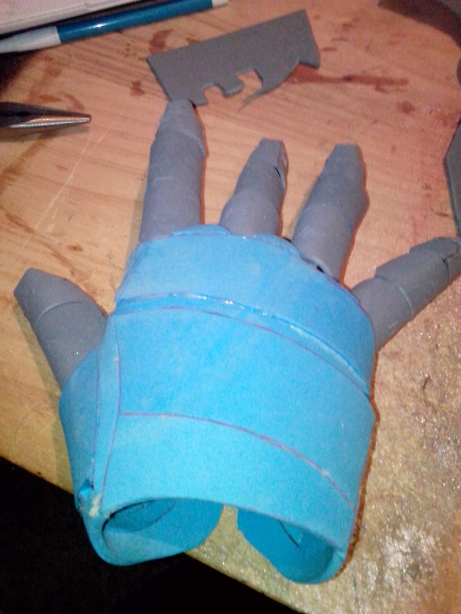Como colofón del día, me he hecho un maniquí de mi mano derecha. Es simple, me he puesto un guante de látex, lo he recubierto de cinta americana, luego lo he cortado por la palma para sacar la mano y lo he rellenado de papel higiénico. He cerrado el corte con más cinta americana y luego he cerrado la muñeca con la misma cinta.
