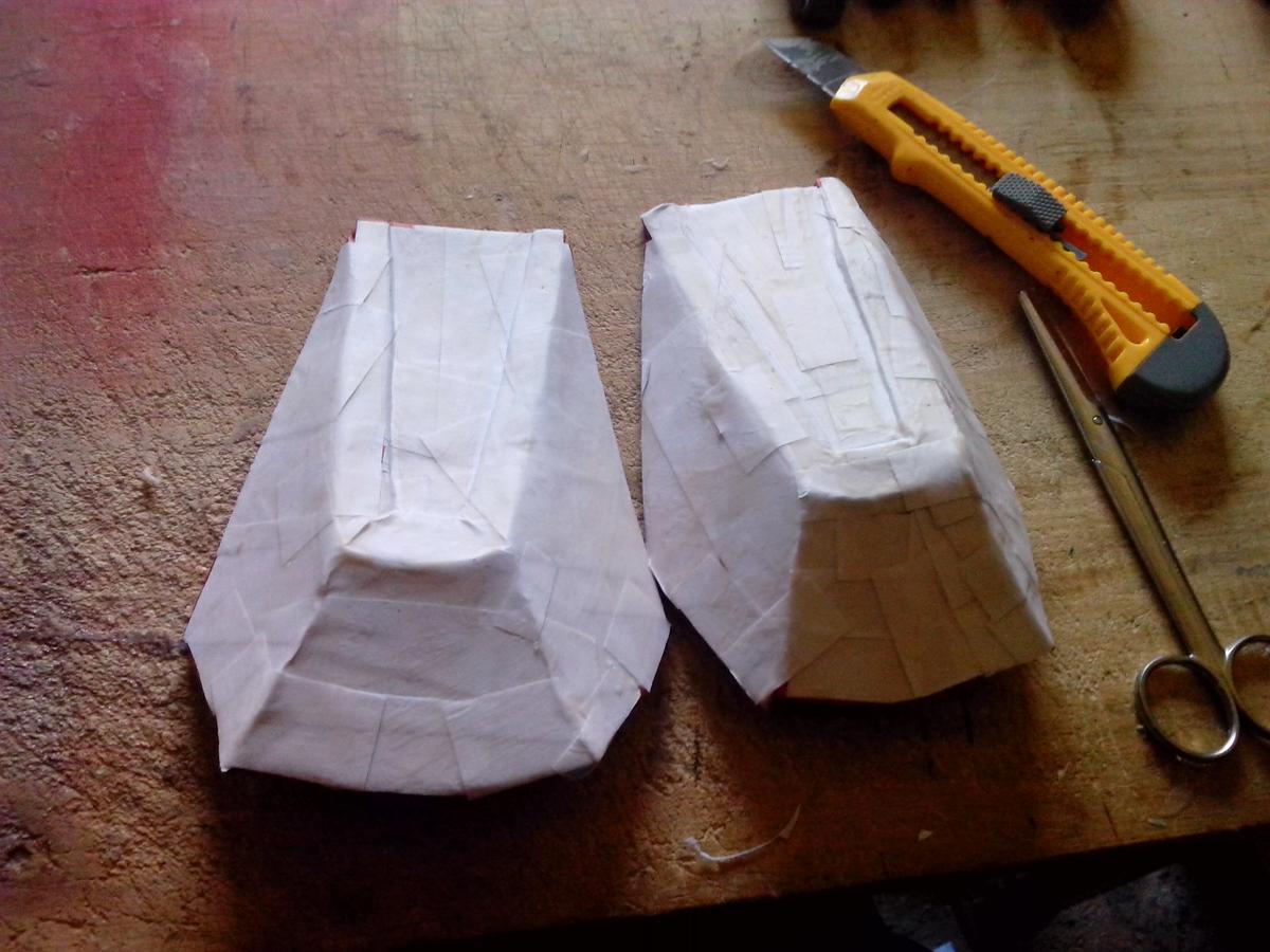 Tras tres días de trabajo y tres capas de papel en ambas caras de ambas piezas, puedo decir que el resultado es bastante bueno. No queda excesivamente liso, pero creo que eso lo podré arreglar más adelante, pero lo que interesa es que queda lo suficientemente rígido como para que las piezas no se deformen por el peso, pero con un punto mínimo de flexibilidad.