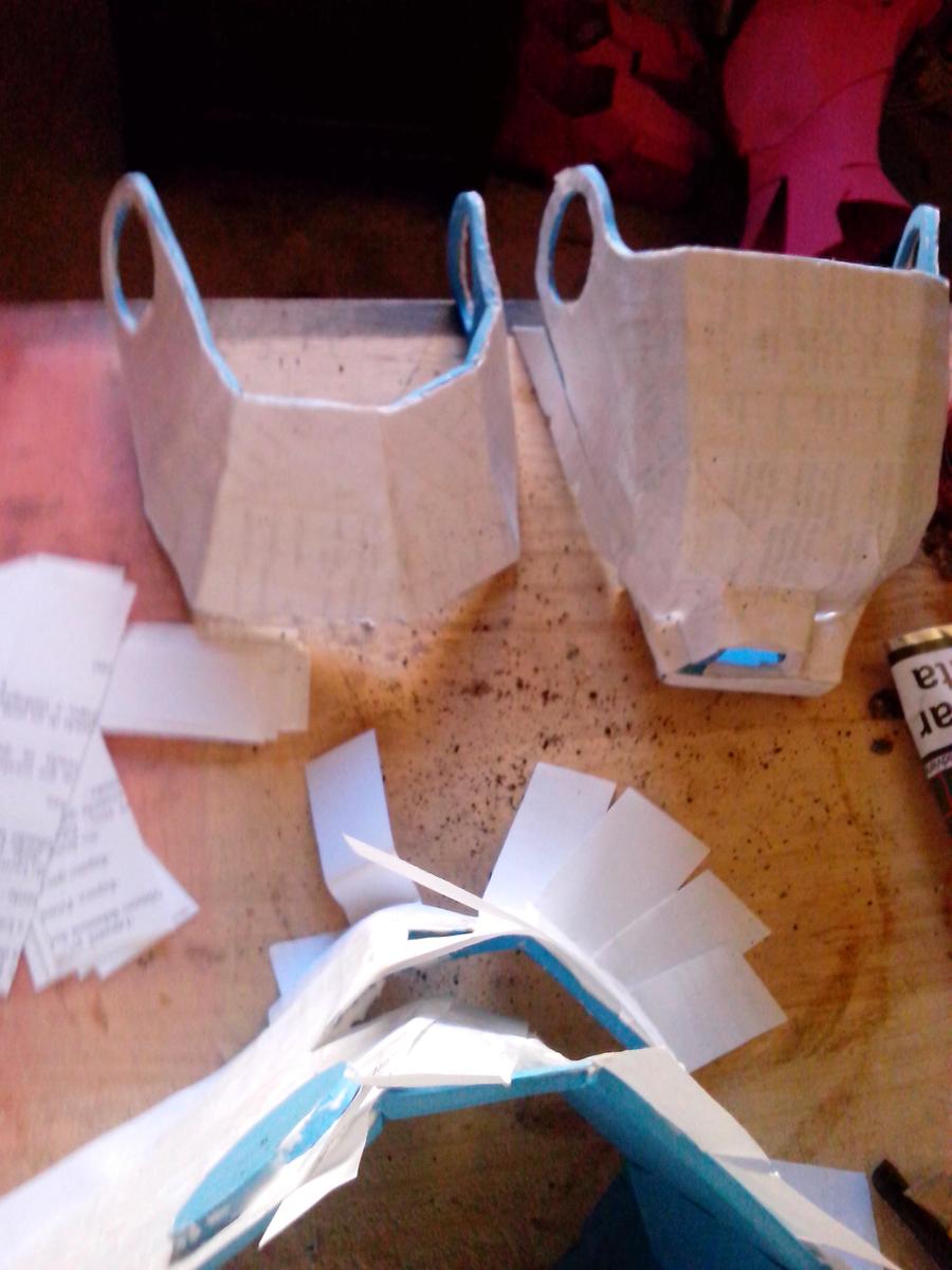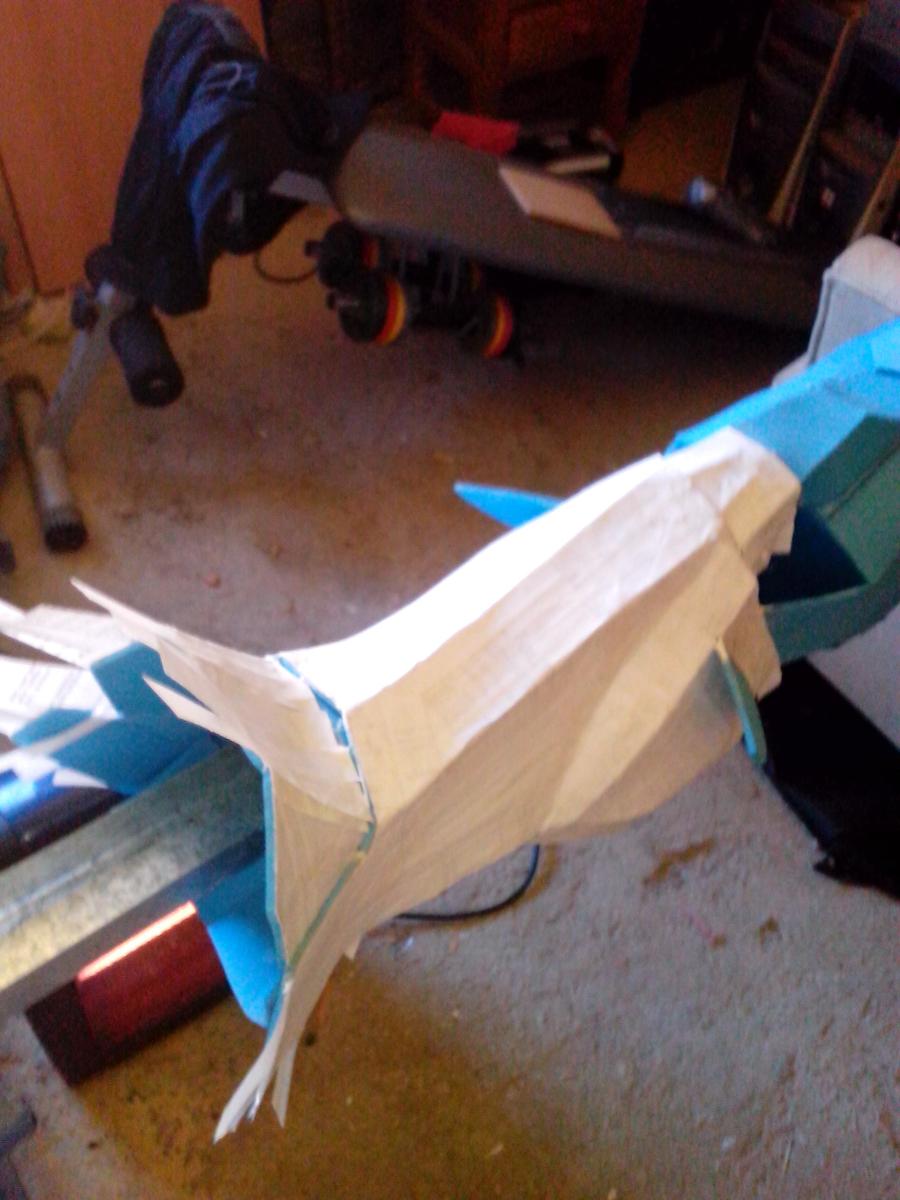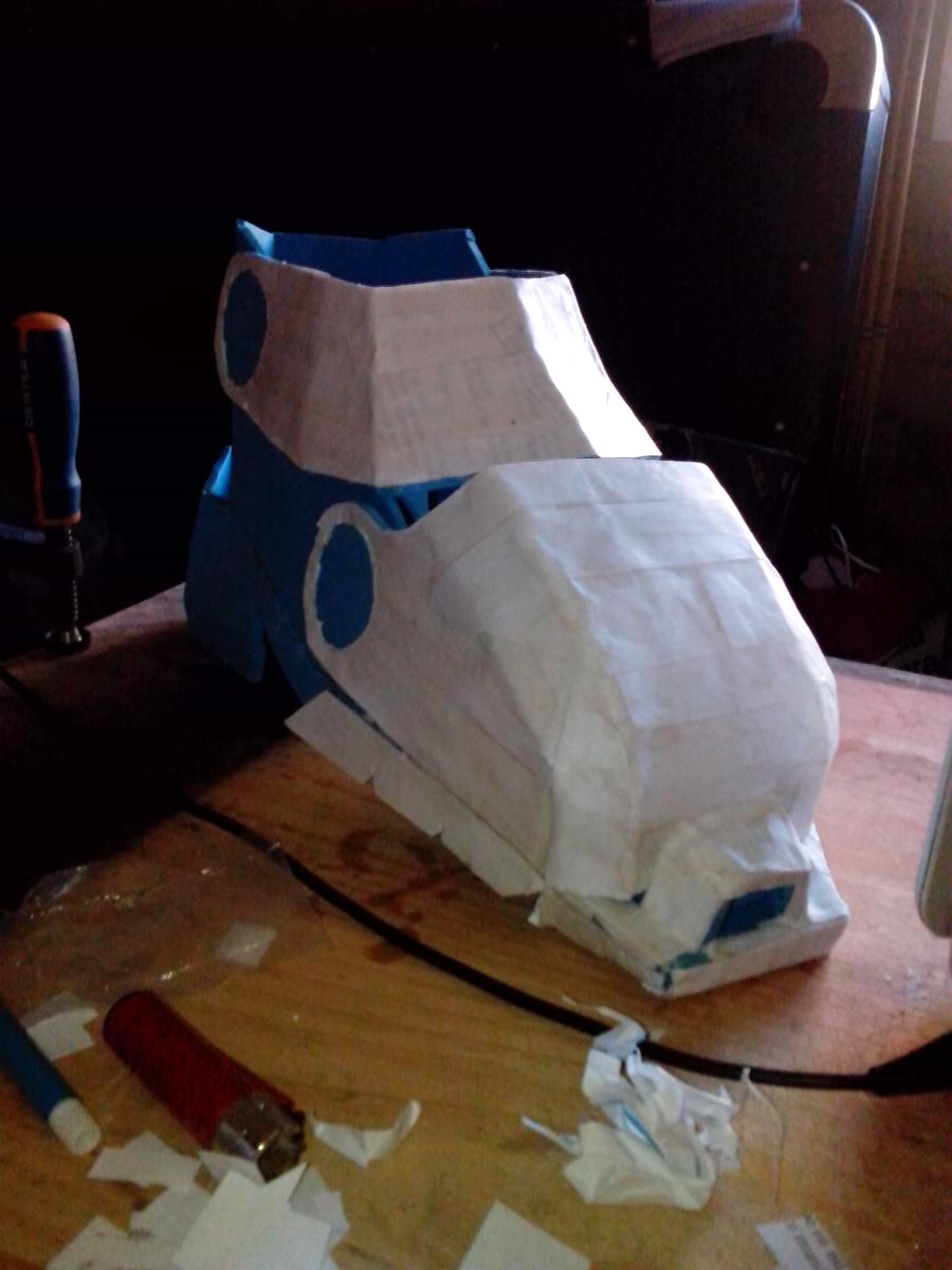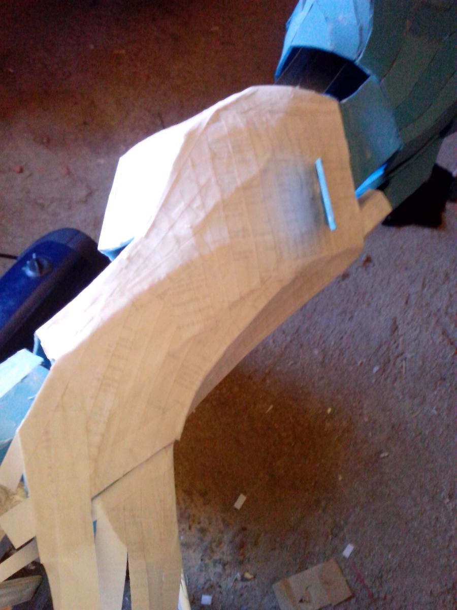 NOTA: en el momento en el que tenga que hacer la espalda, tengo que arreglar unos problemas que tiene. Además, debo colgar peto y espalda juntos para poder cubrirlas, probablemente de la misma forma que estoy haciendo con espinilleras y muslos.