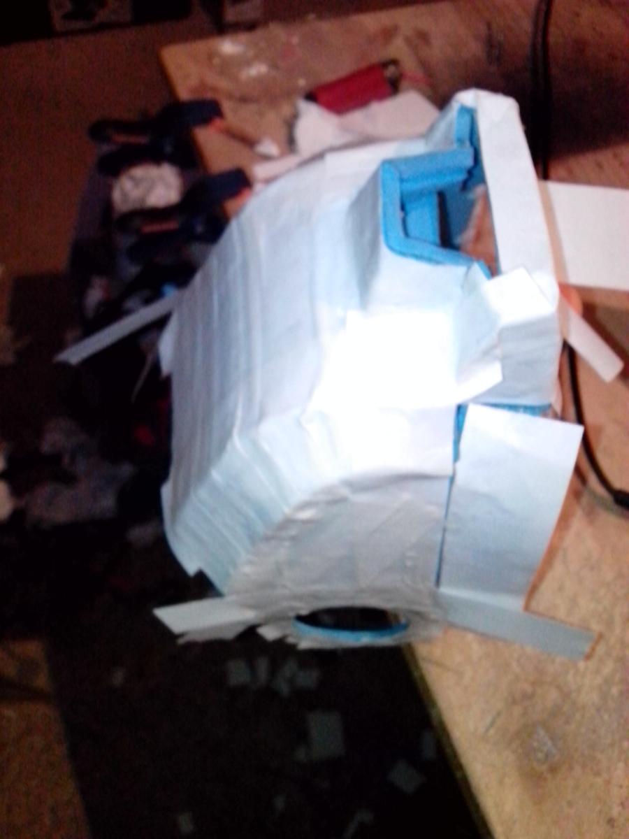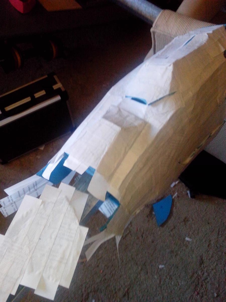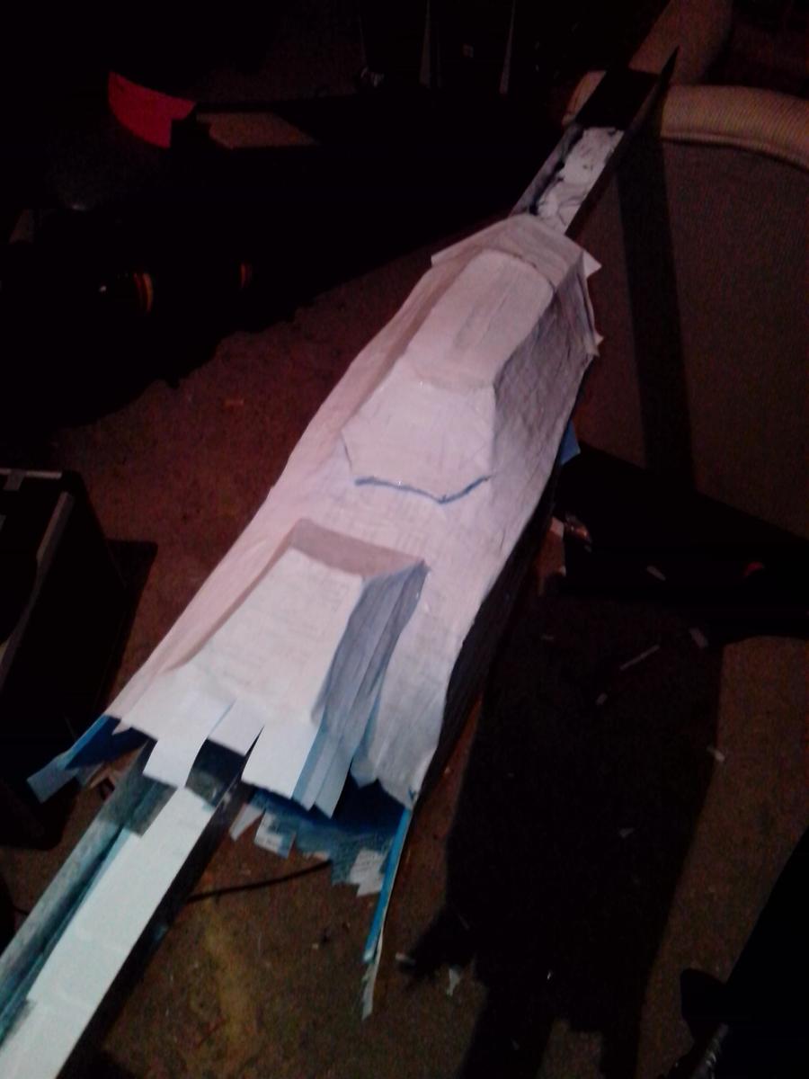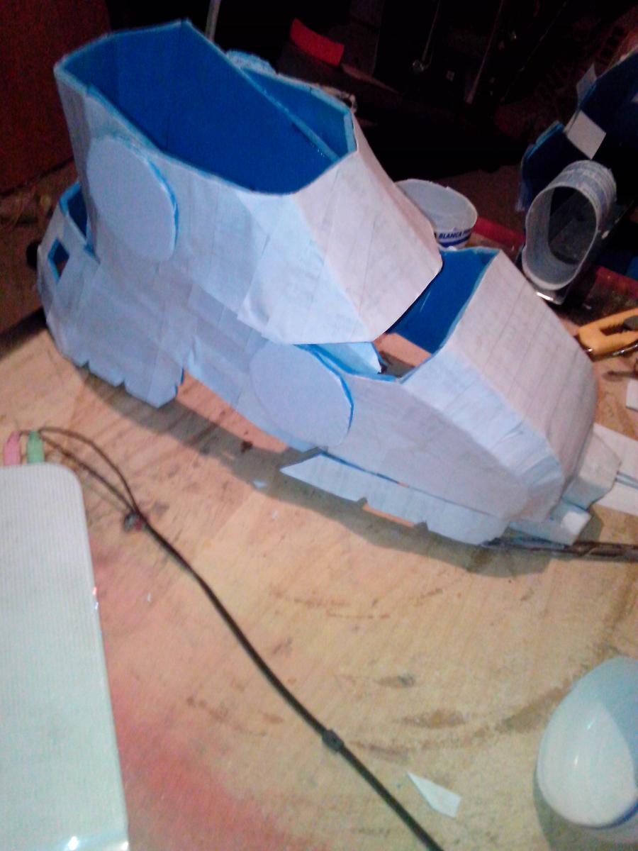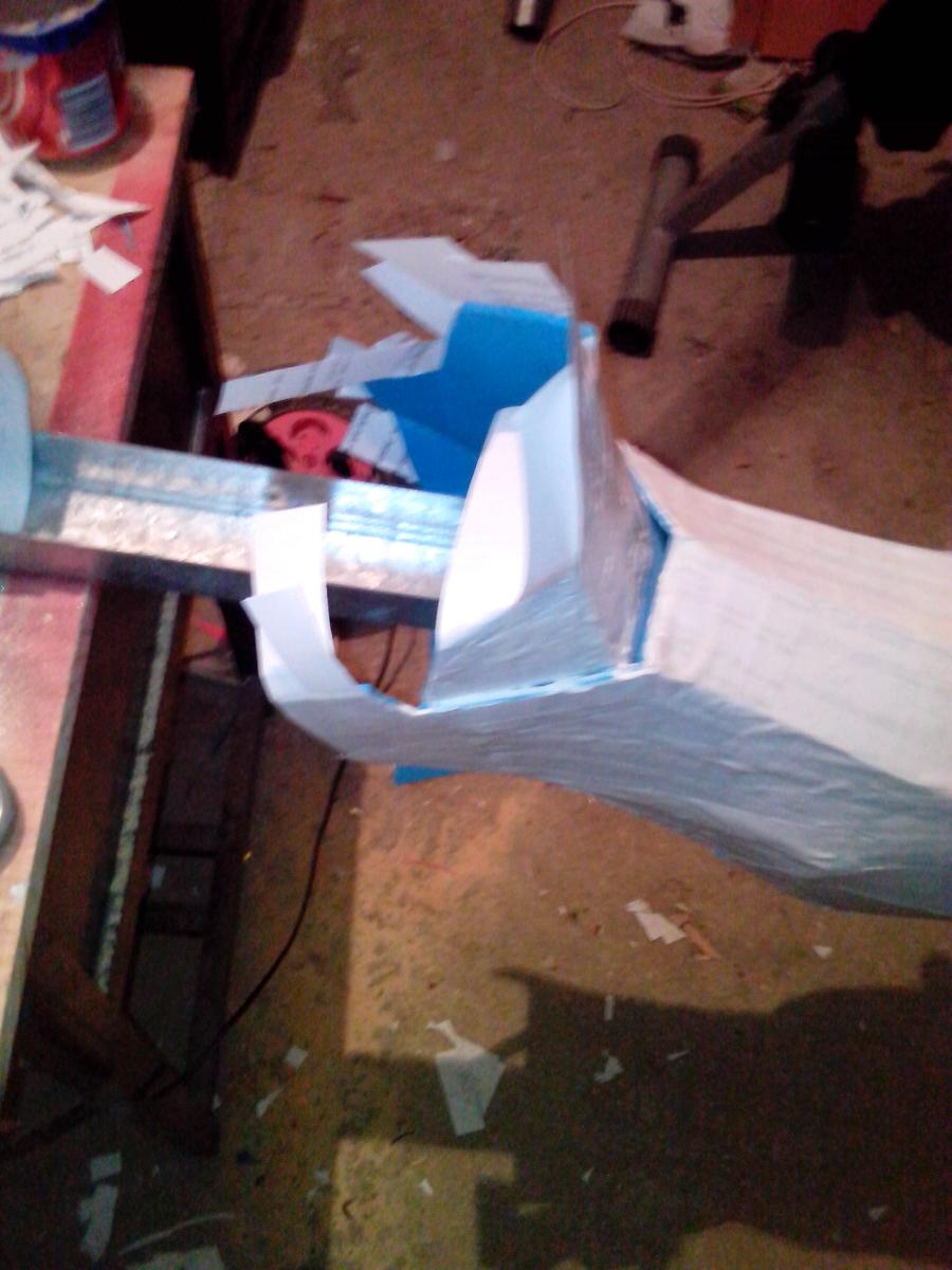 En cuanto al muslo, el resultado no me ha convencido 100%, pero al menos ha quedado endurecido. Mañana, cuando esté seco, lo colocaré junto con la espinilla y la bota derecha, quedando completa la pierna derecha.