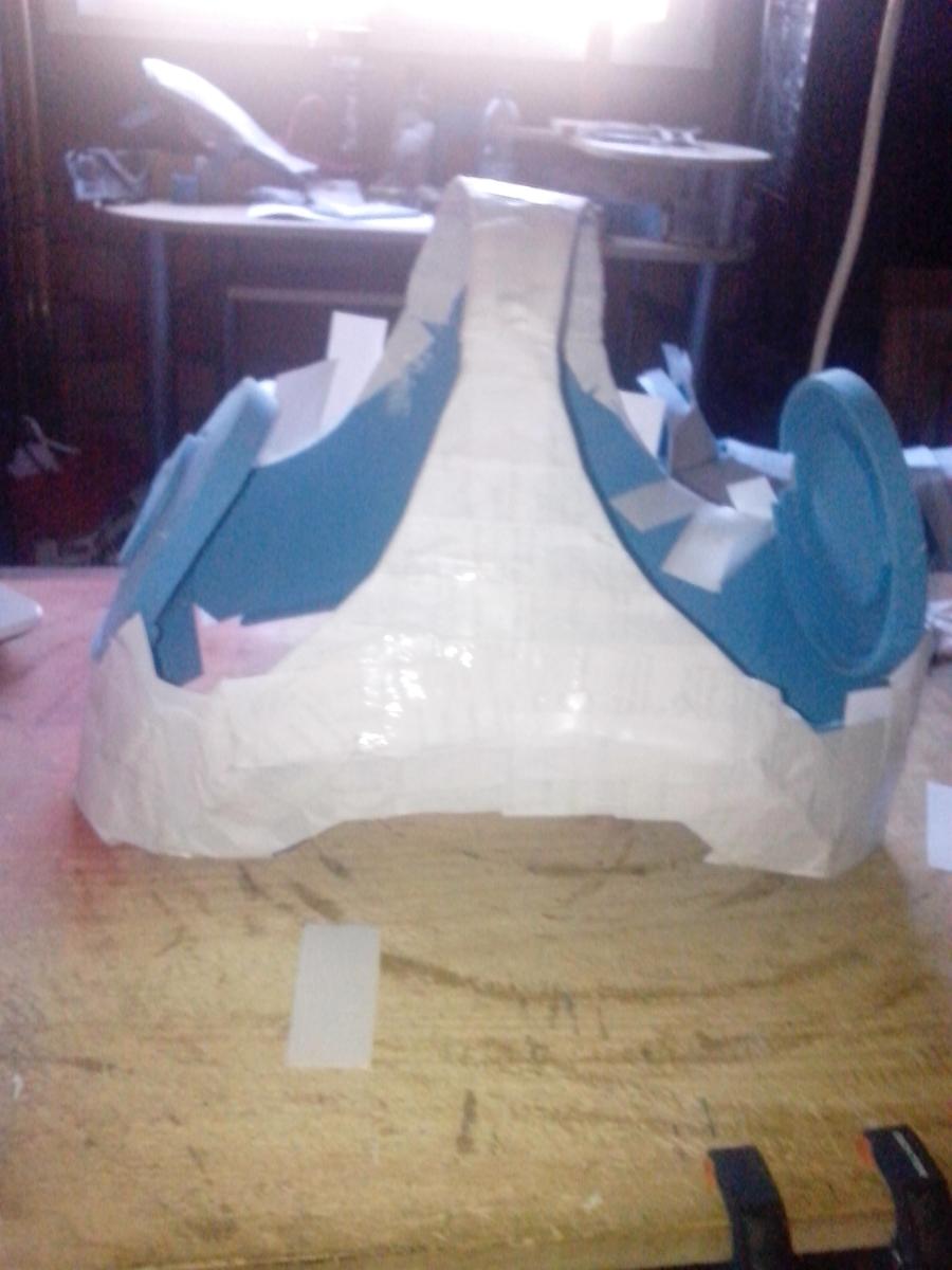 Ahora me queda dar la segunda capa al muslo y la coquilla y ya podré comenzar con la primera a los abdominales. Antes de hacer peto y espalda me gustaría hacer los brazos y los hombros, ya que la zona del pecho es la que más papel y cola me va a llevar. Lo último como siempre, el casco, del cual me estoy planteando si separar máscara y casco o hacerlo todo junto marcando las uniones.