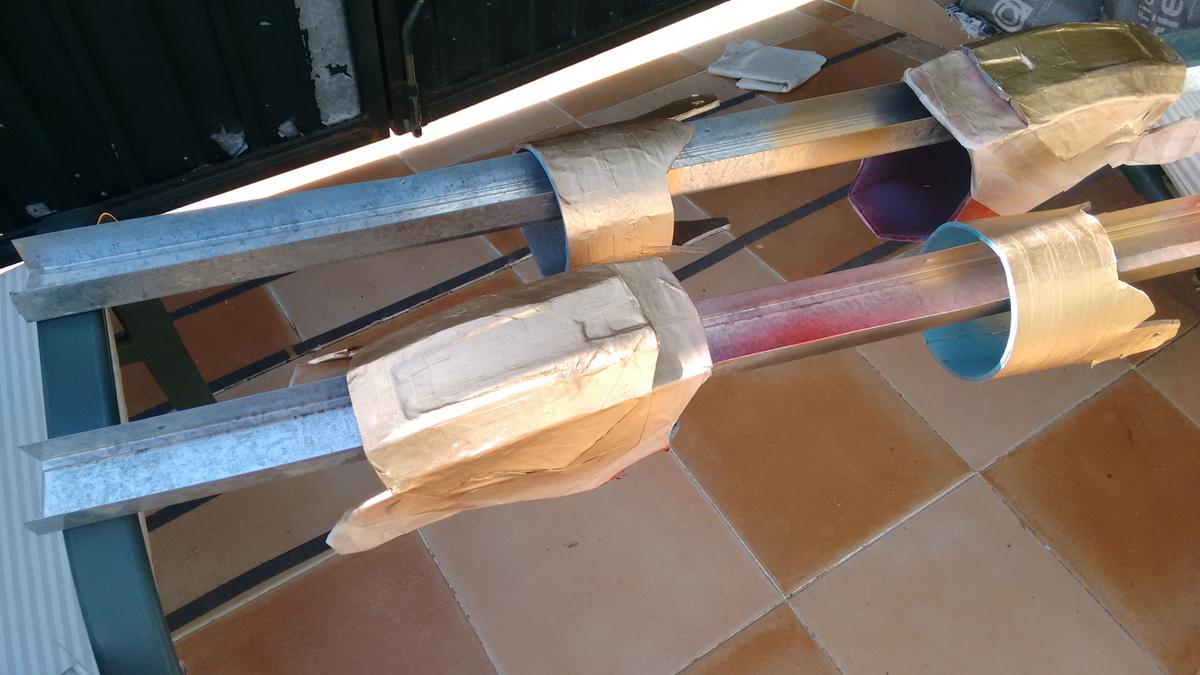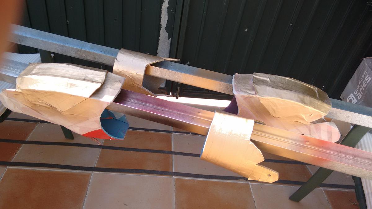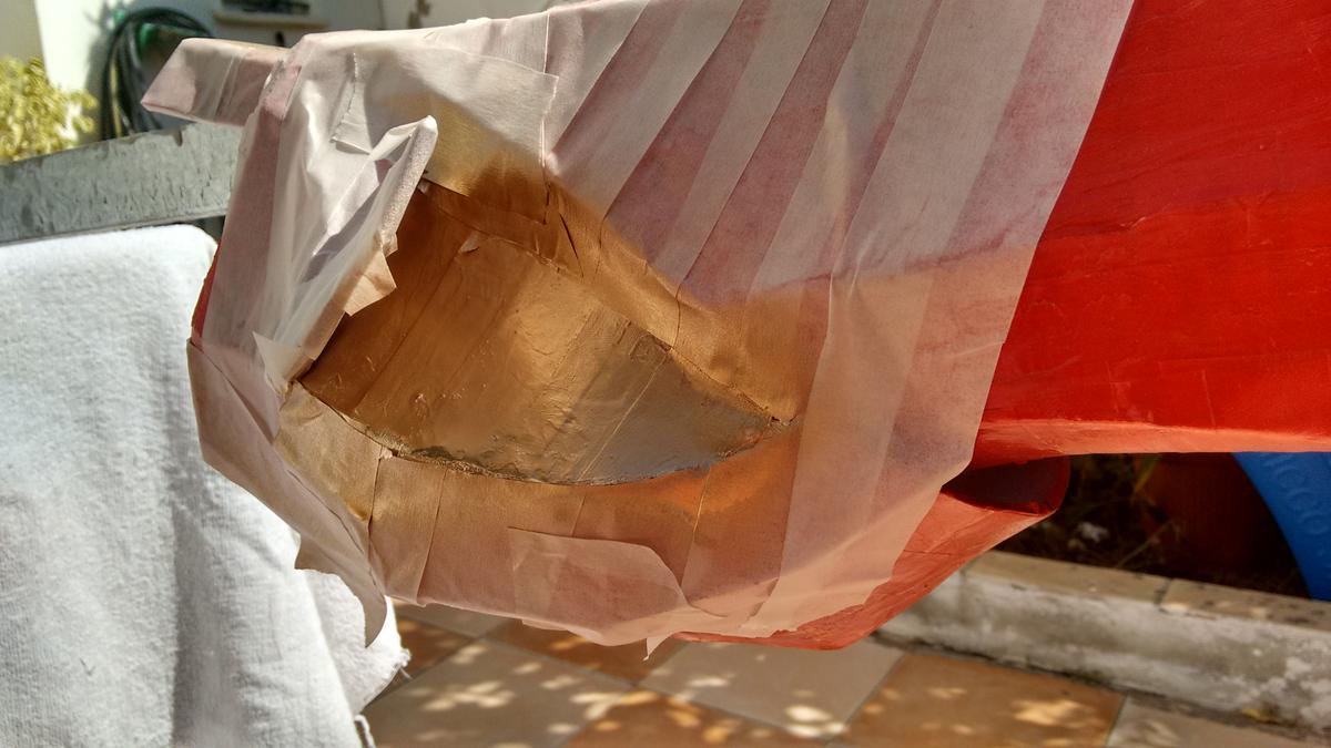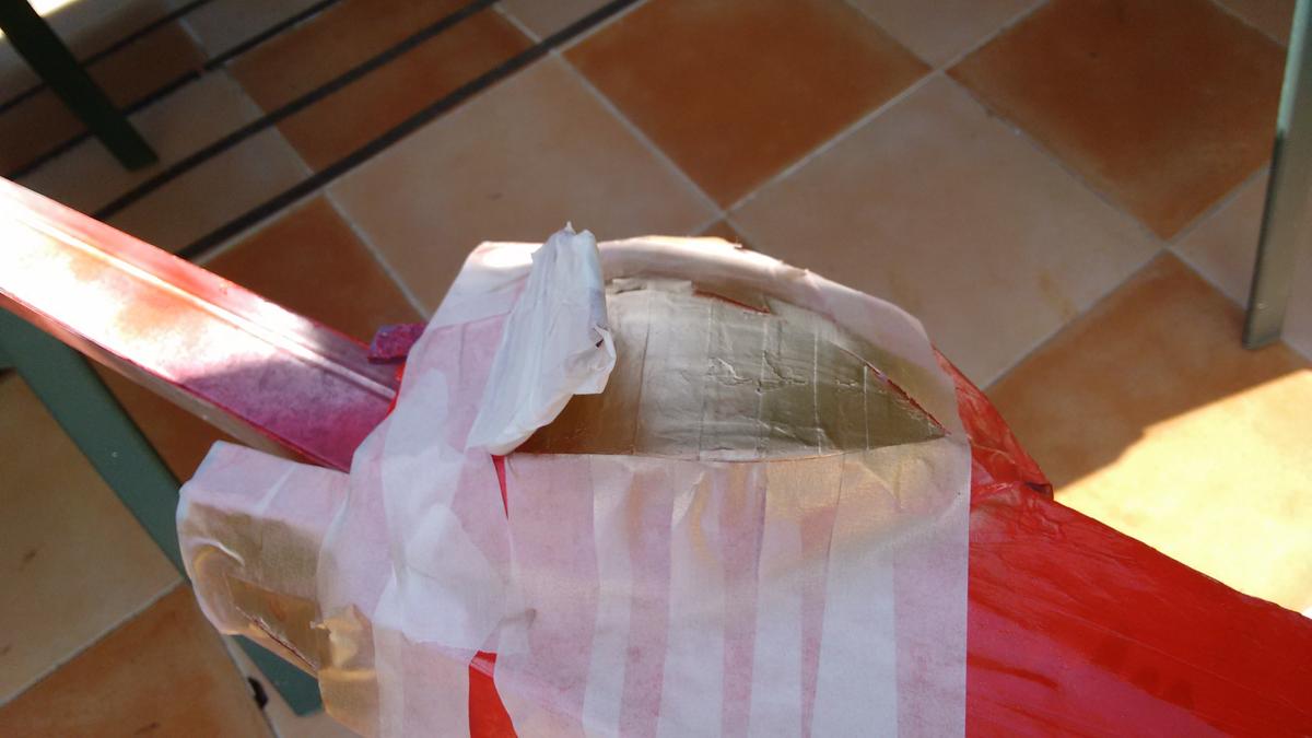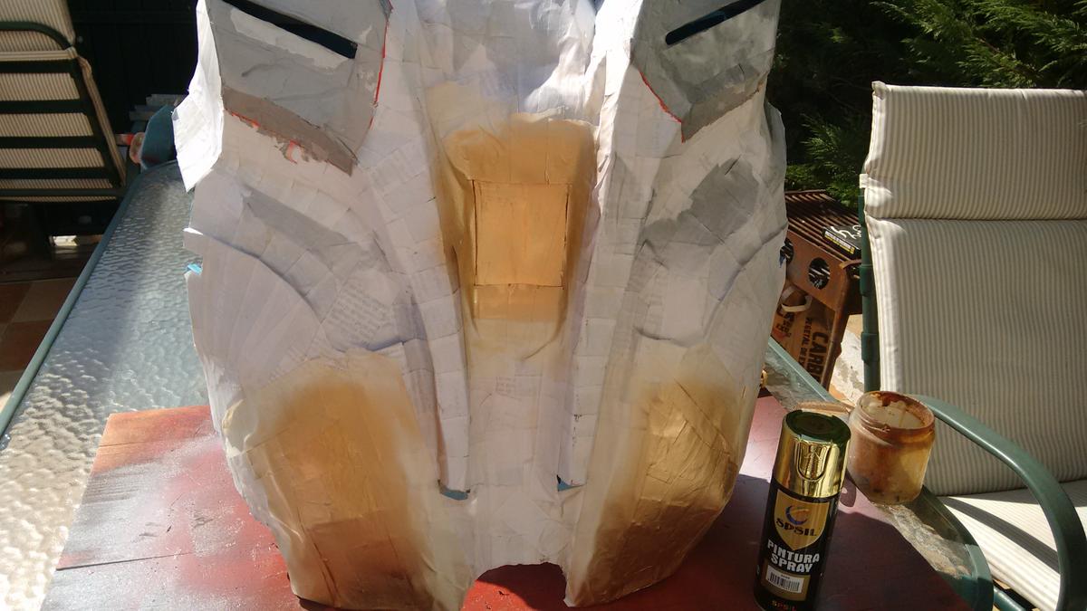 Me he comido toda la cinta de carrocero tapando la armadura que no debía ser pintada. No es que haya tapado toda la armadura, es que algunas partes son complicadas y necesitan de cierto ingenio a la hora de tapar.