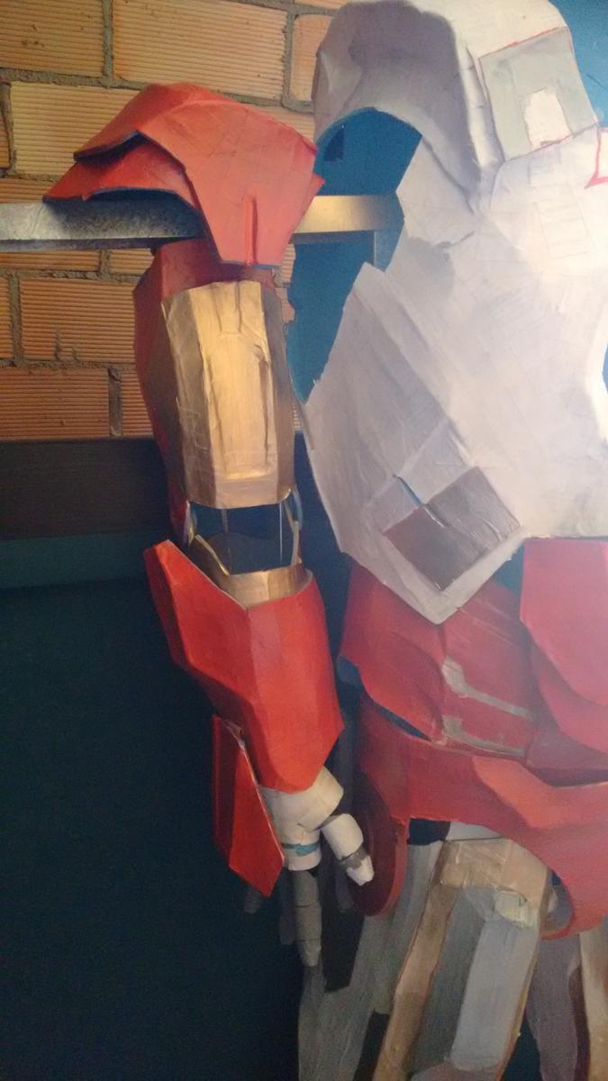 Con la pintura roja sólo tendré que pintar ya los pies, los muslos, el peto (con espalda y cuello), la placa de una mano, mano y dedos derechos (o izquierdos, no recuerdo), y así de memoria creo que ya está. Repasar un par de puntos donde la cinta de carrocero no era suficiente y listo, la fase de pintado habrá terminado.