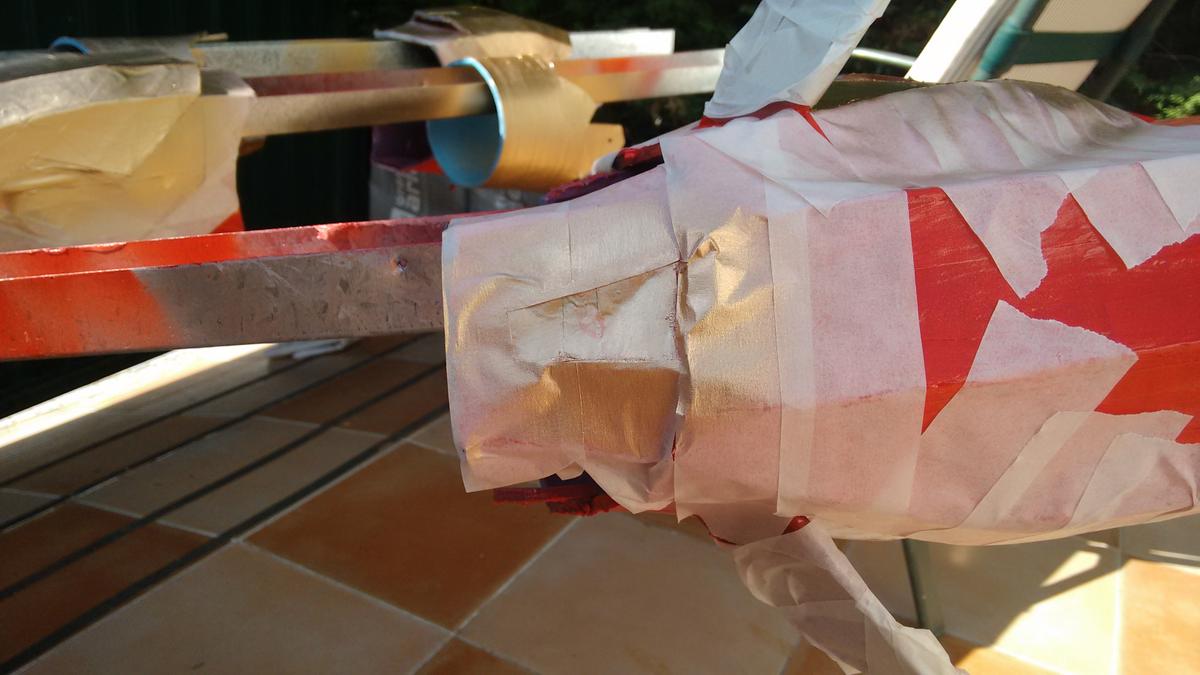 Al quitar la cinta de carrocero he visto que hay pequeñas imperfecciones que espero reparar cuando ponga la pintura roja. Ya sólo queda, si no me equivoco, comprar un par de botes de pintura roja (y otro carrete de cinta de carrocero), y habré terminado la fase de pintado.