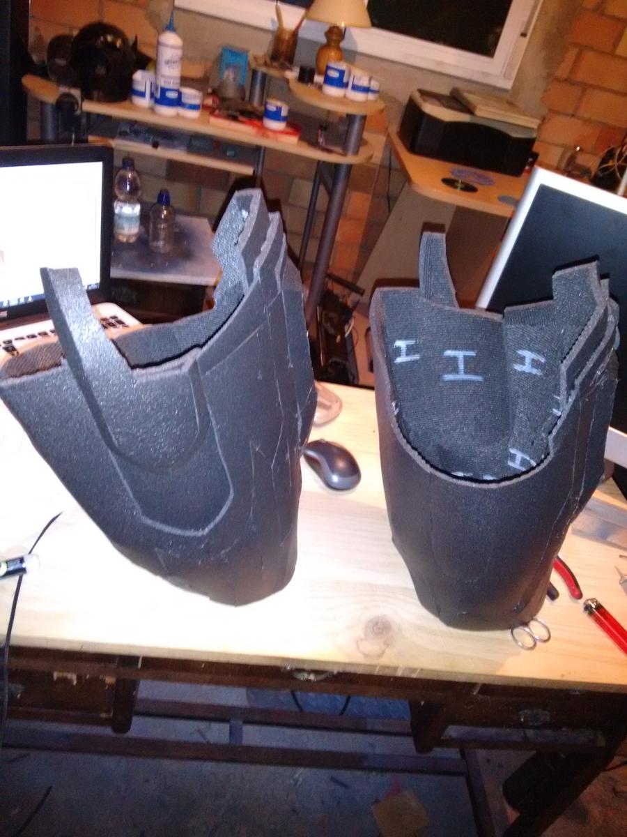 Mañana terminaré la última capa de la espinilla izquierda, comenzaré con la primera capa exterior del muslo derecho y comenzaré a trabajar tanto en la coquilla como en los hip-pod. Creo que con el foam que tengo incluso me dará para terminar los abdominales y comenzar con el pecho.