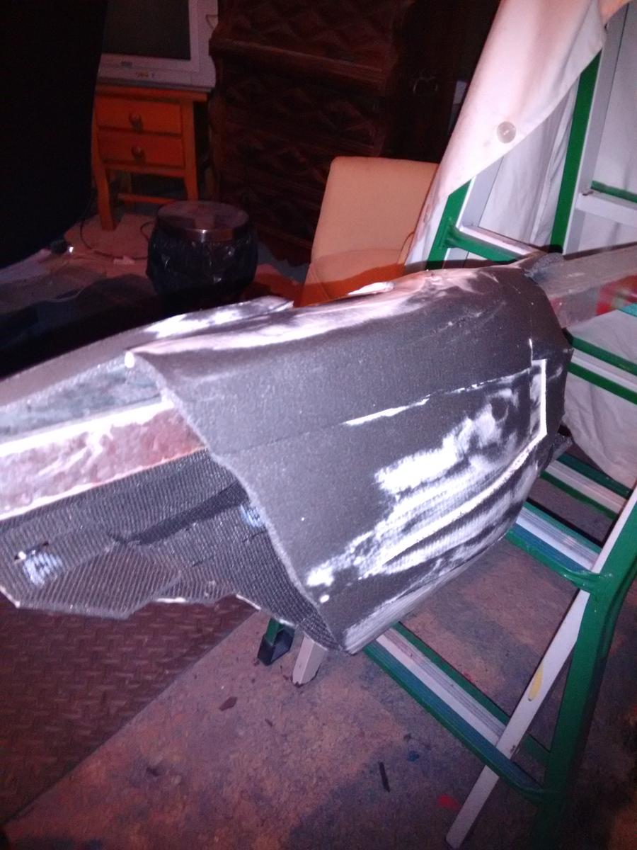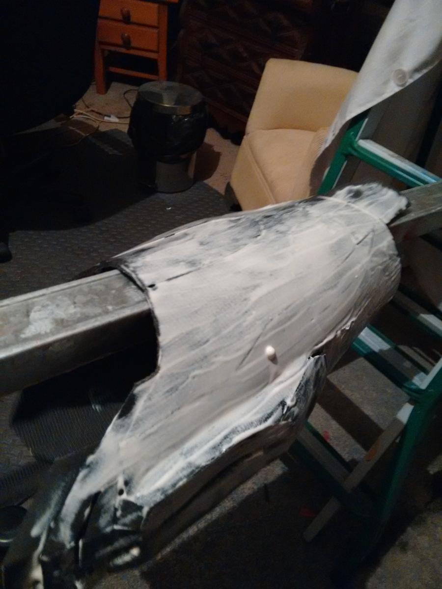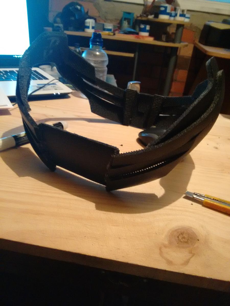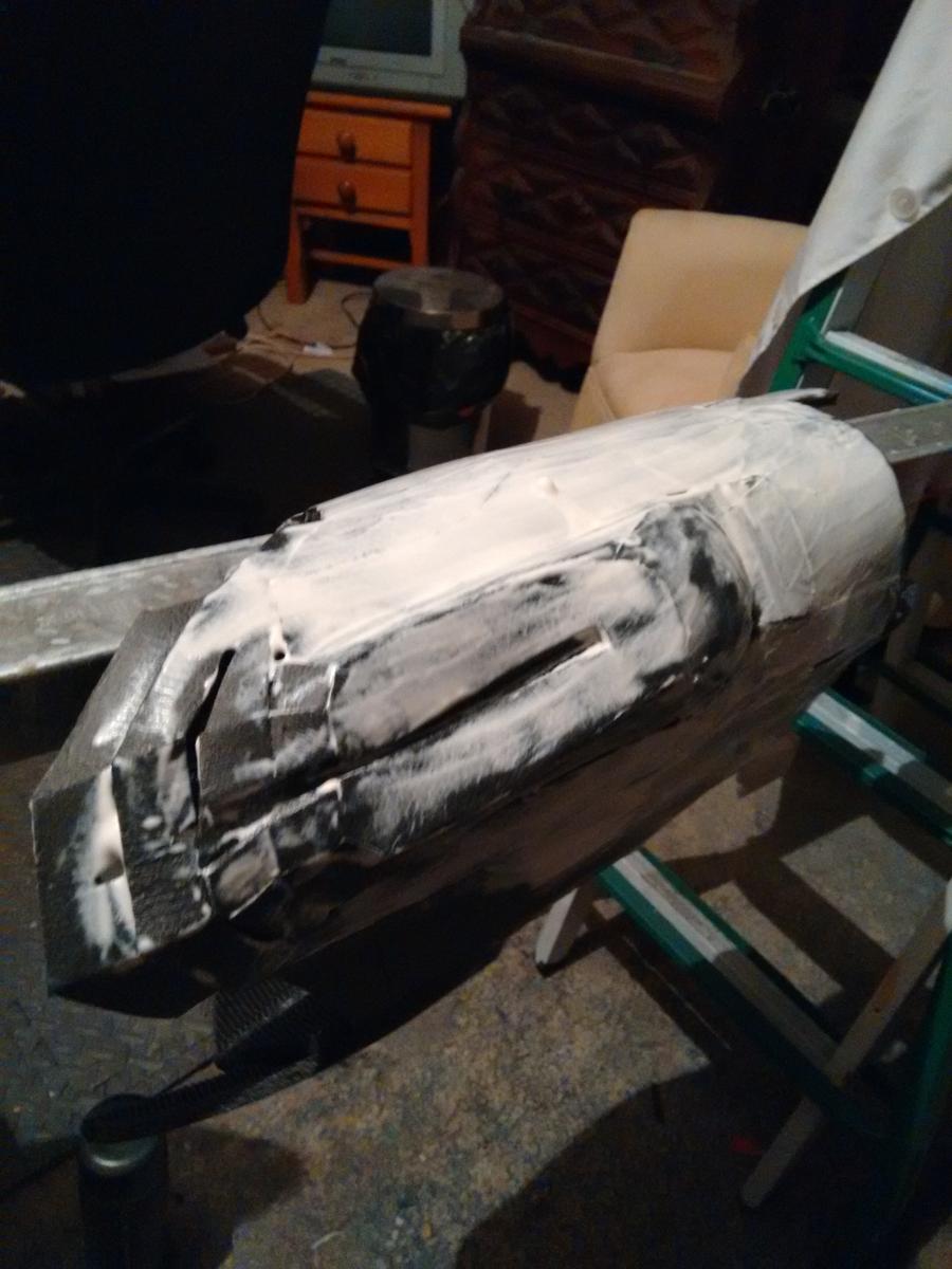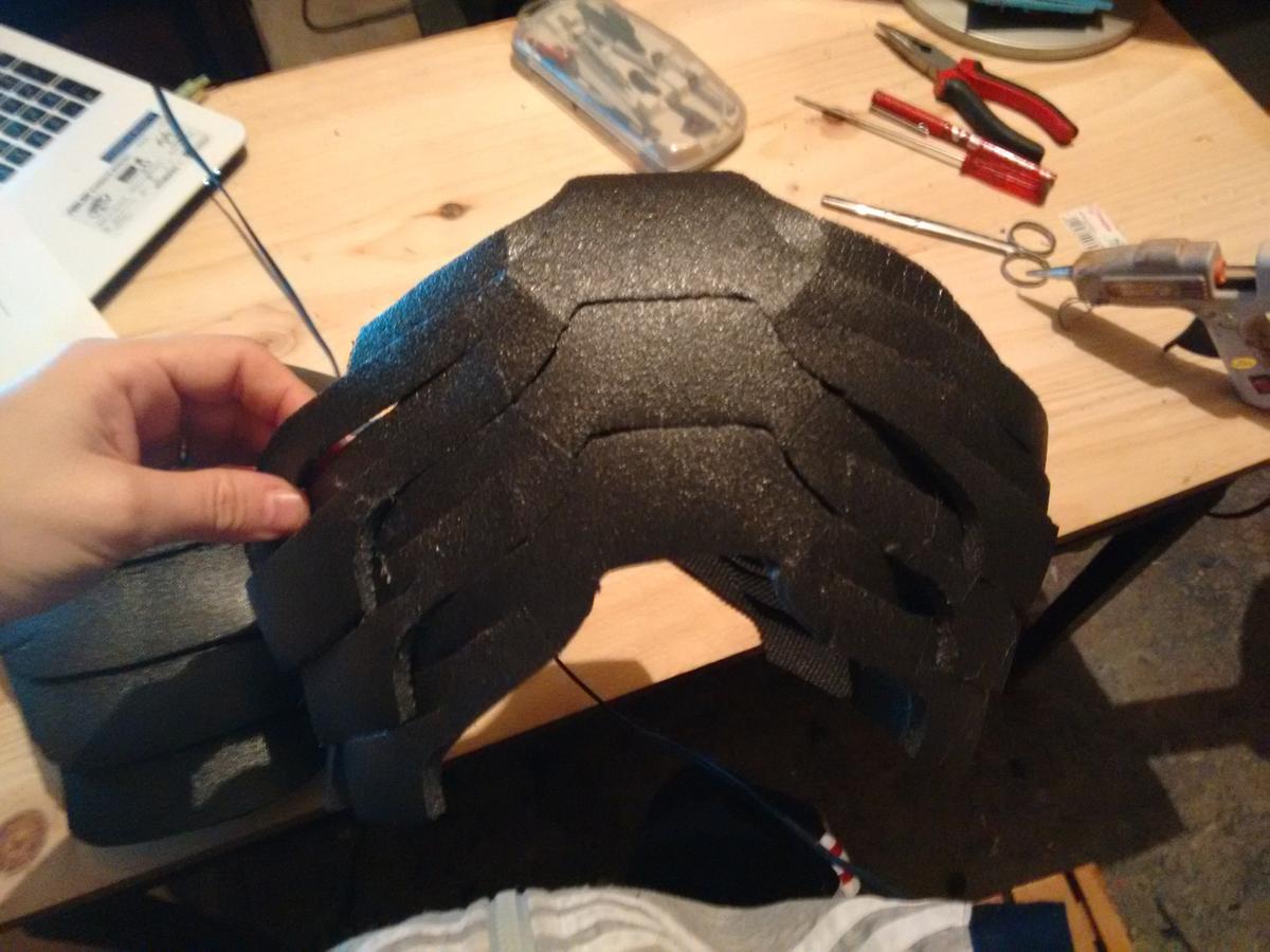 Con todo esto ya terminado, sólo tendré que hacer peto y espalda, ambos brazos desde el antebrazo al hombro y luego el cuello y el casco. El cuello lo voy a hacer de nuevo porque he encontrado unos planos que me vendrán muy bien porque es mucho más realista, al igual que la espina dorsal que va pegada a la espalda. Finalmente el casco irá con el mismo foam con el que lo estoy preparando todo.