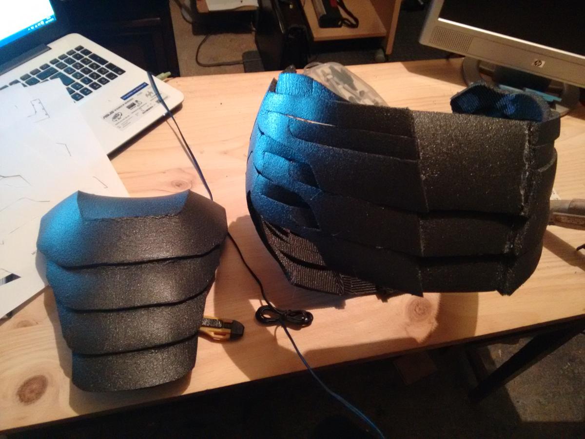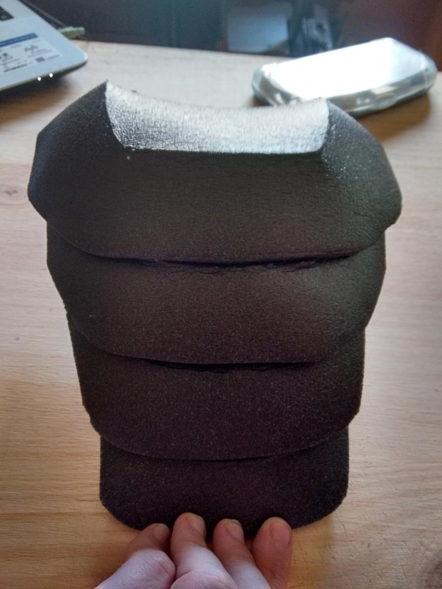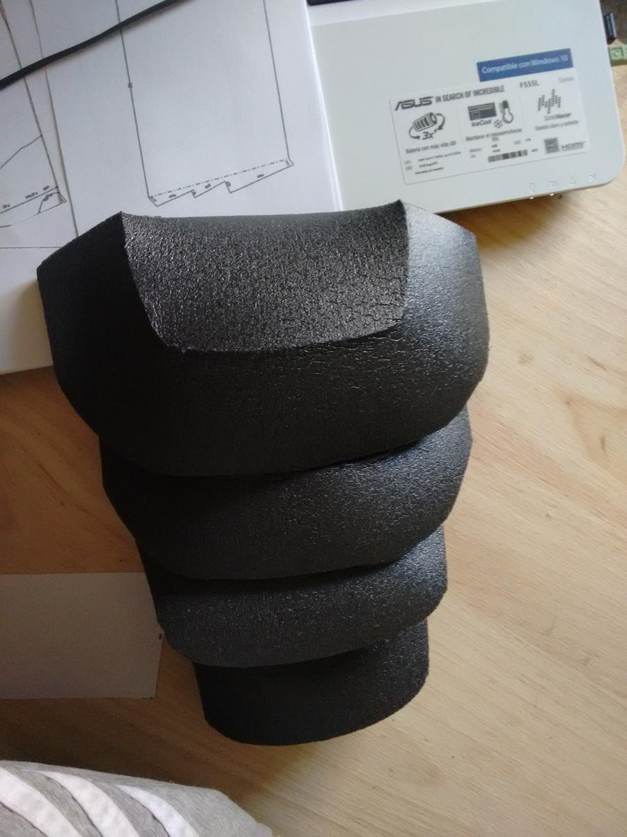 Parece mentira pero con 10 euros de foam he hecho casi la mitad de la armadura, ya que me queda poco foam y probablemente sólo podría hacer los protectores de las manos o algo así. Sin embargo no voy a hacer de momento más piezas hasta que no consiga más foam y endurezca lo que tengo hecho.