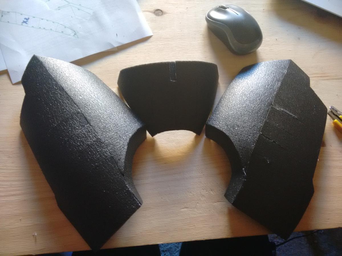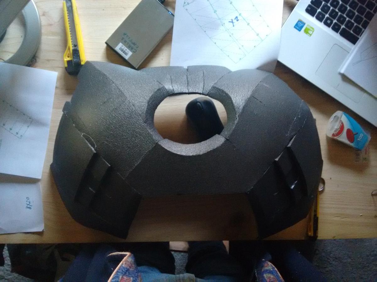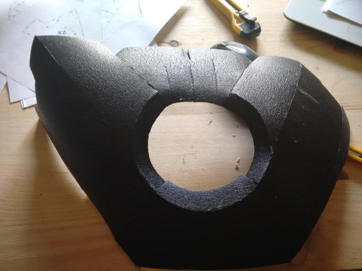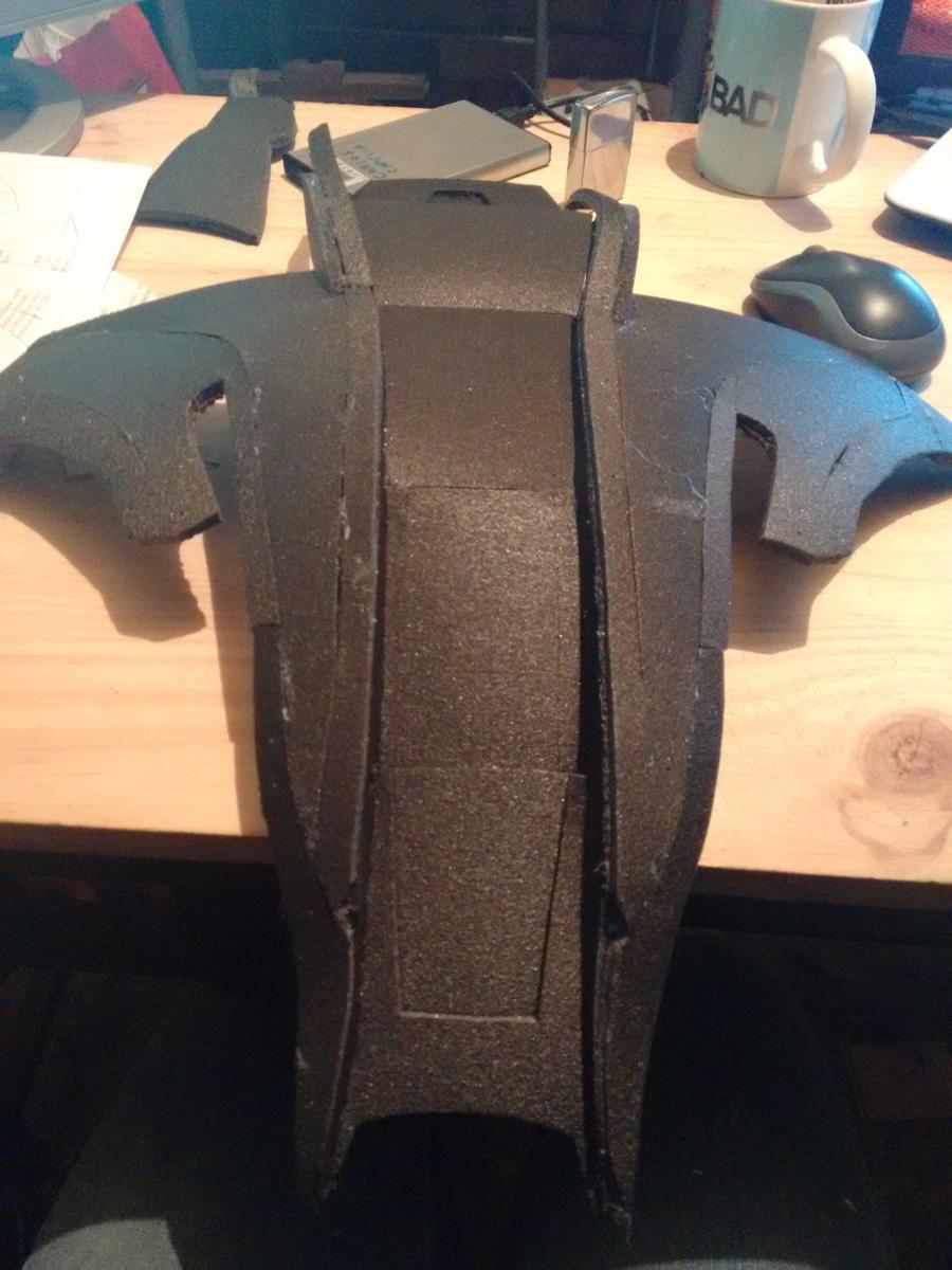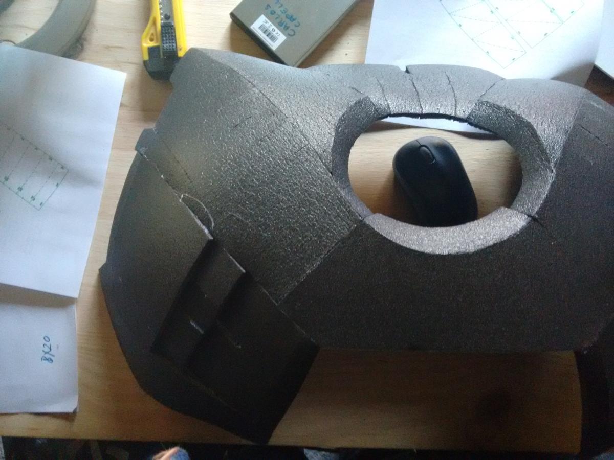 El peto ha terminado siendo una buena pieza. En apenas una hora ya estaba hecho. Este foam más grueso es una maravilla para trabajar en ese sentido, aunque sea más difícil de endurecer si no le pongo esa pasta que luego se lija, a lo que me niego porque son horas y horas de lijado.