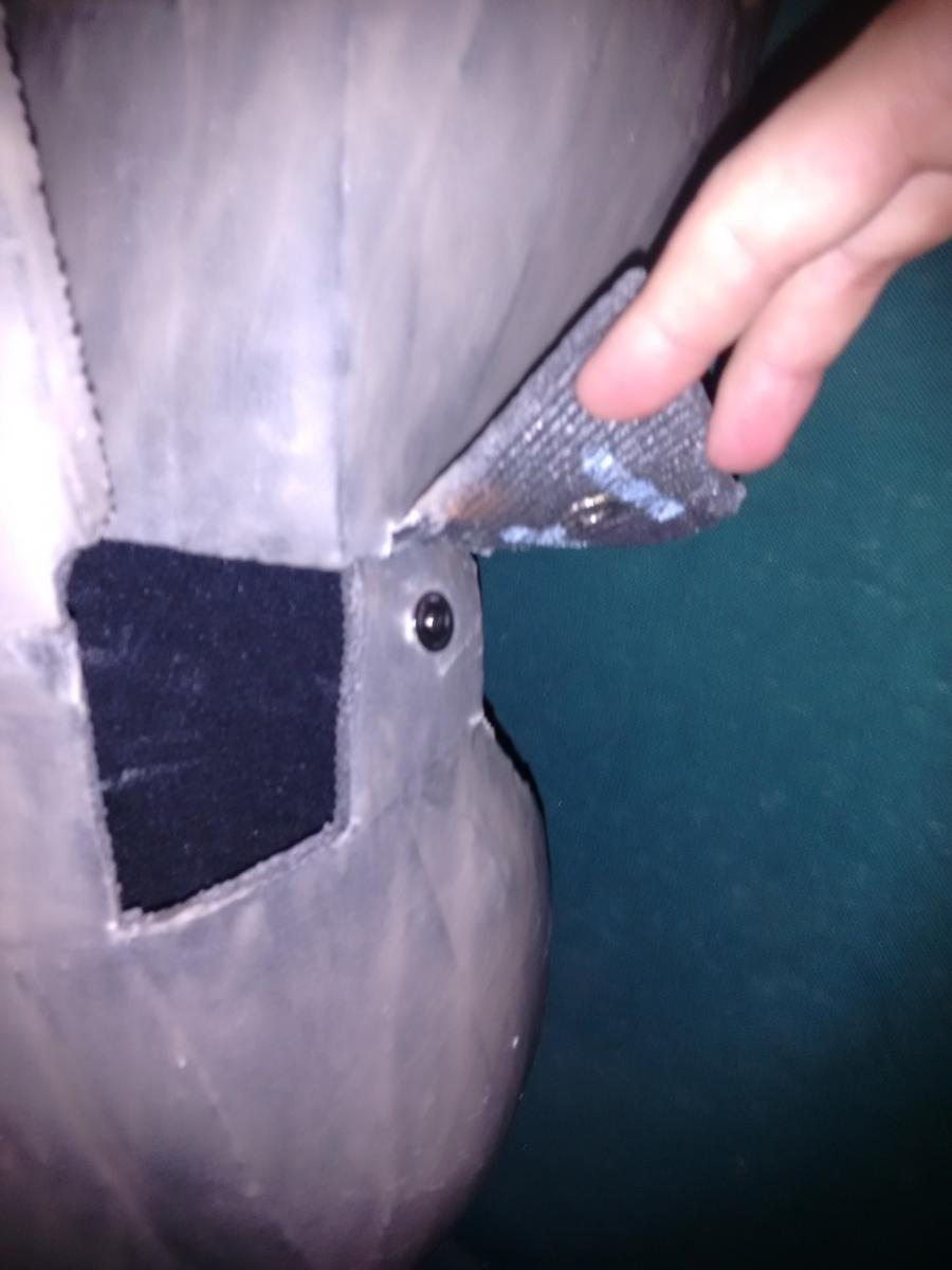En las rodillas he colocado un imán como el que veis en la foto. Eso deja colocado el muslo exactamente a la altura que quiero, no se mueve y permite doblar las rodillas perfectamente. Lo voy a colocar en ambas rodillas y ambos codos. De momento no he encontrado dónde se compran y están saliendo de bolsos reciclados.