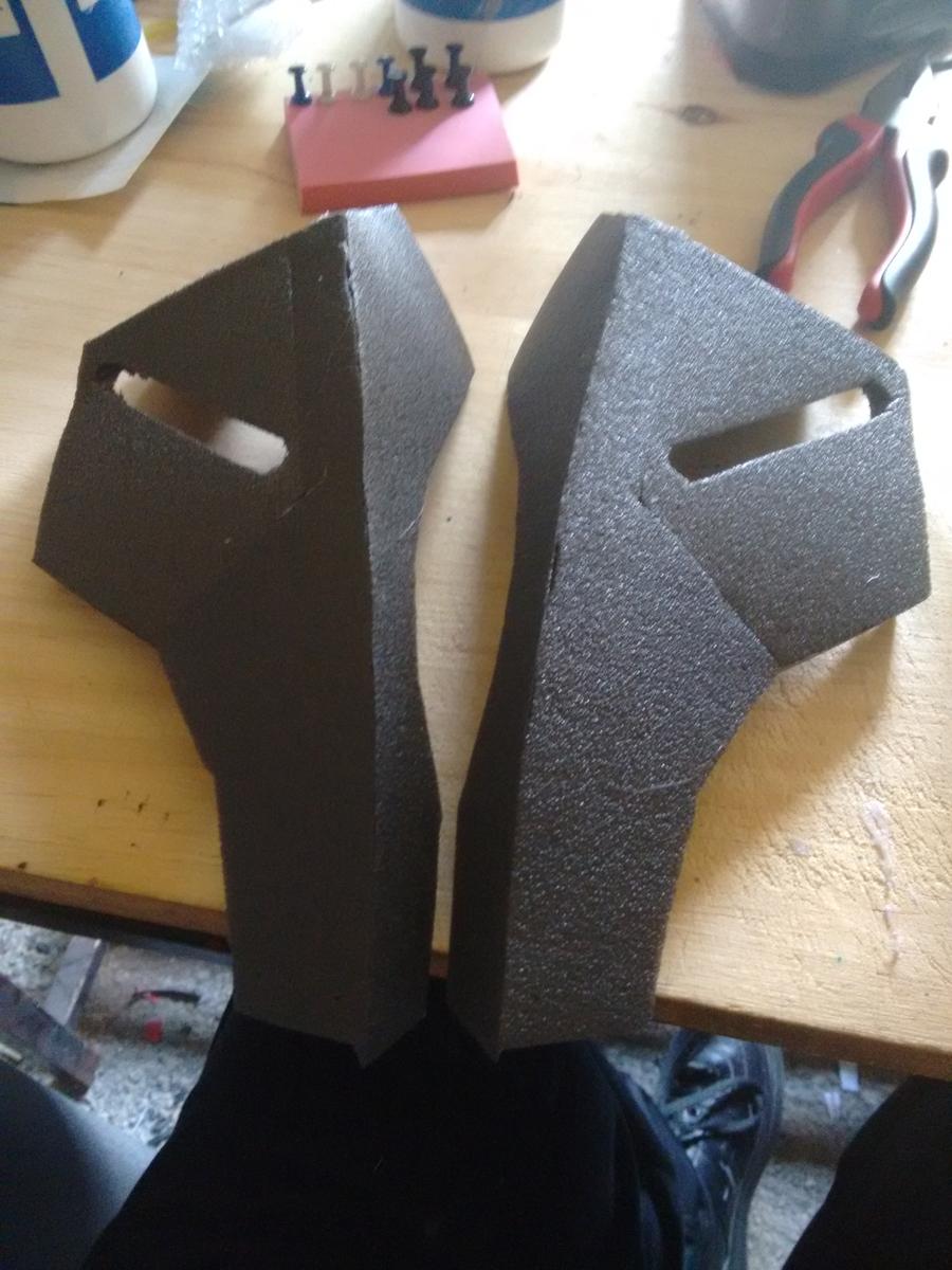 El proceso de endurecido es mucho más lento de lo que imaginaba. En todo el día sólo he podido dar un par de capas al exterior de la espinilla derecha y al interior de las botas, claro que no estoy di ...