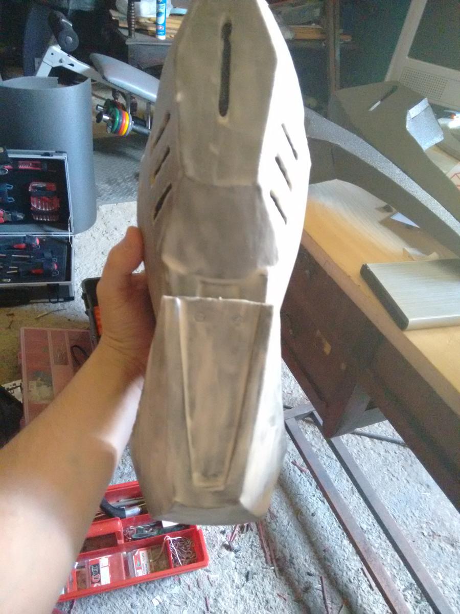 NOTA: Una vez finalizadas esas dos etapas, la VI y VII, quiero ponerle una capa generosa de laca que evite el cuarteo de la misma y proteja la pintura, lo cual sería la fase VIII, la IX será enganchar todo de forma que se mantenga, sé cómo lo voy a hacer, con unos imanes de botón que mantengan todo en su sitio, luego ya vendrá la fase X que es la electrónica que tengo también más o menos claro cómo la voy a hacer, habría terminado la armadura, lo cual es más de lo que puedo pensar ahora mismo, es posible que me quede aún otro año de trabajo, lo cual elevaría a 3 los años que he dedicado a este proyecto. De momento 89 días, que tampoco es baladí, aunque en realidad he tardado 18 días hábiles en terminar el montaje y endurecido de la armadura, no está mal, contando con materiales suficientes podría hacer una armadura completa en menos de dos meses.