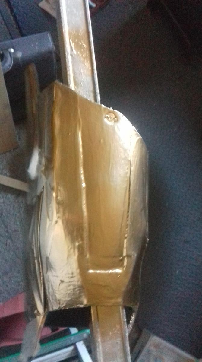 Hoy he puesto la capa dorada a toda la armadura, al menos a lo que necesita llevar dorado. Me ha faltado tan solo los abdominales que haré mañana, pero en cuanto esté hecho y terminado haré una foto del conjunto. Por desgracia dorado y plateado de momento no se diferencian en demasía, pero servirá, al menos ambos colores son de la misma marca.