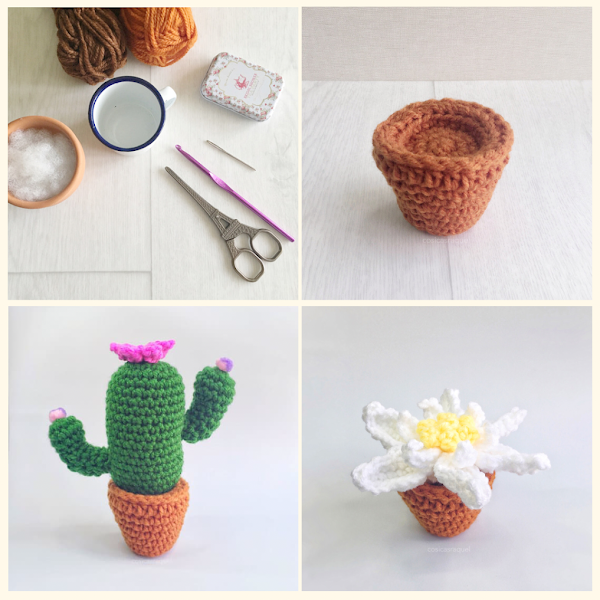 No es necesario que uses las mismas macetas que yo, también te explico como adaptarlas a cualquier recipiente y si no encuentras o te apetece también puedes tejer tu maceta de crochet.