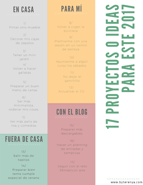 Lo malo es que casi no tengo tiempo para más, pero mi cabecita me pide muuuuchas ideas y proyectos así que para empezar este nuevo año, me he hecho una lista de todo lo que quisiera hacer este 2017...