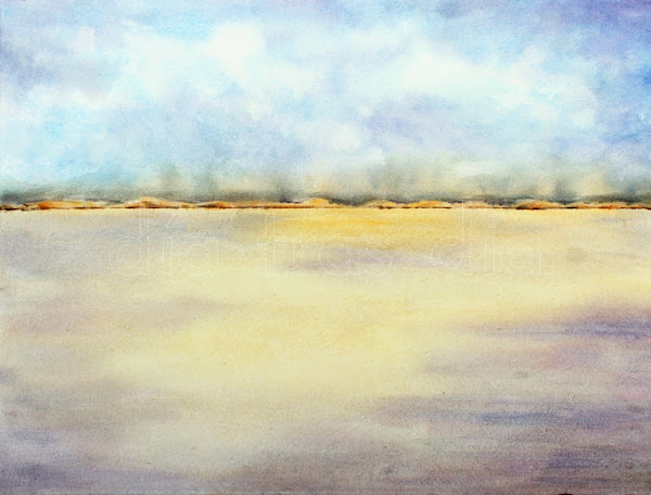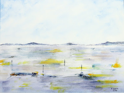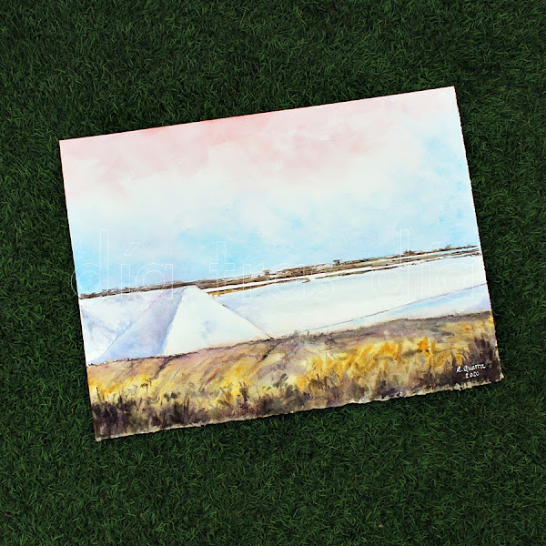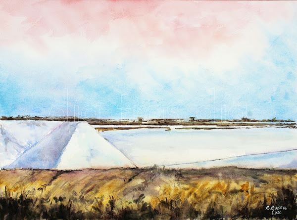 La segunda acuarela es una imagen de unas salinas en Sanlúcar:
