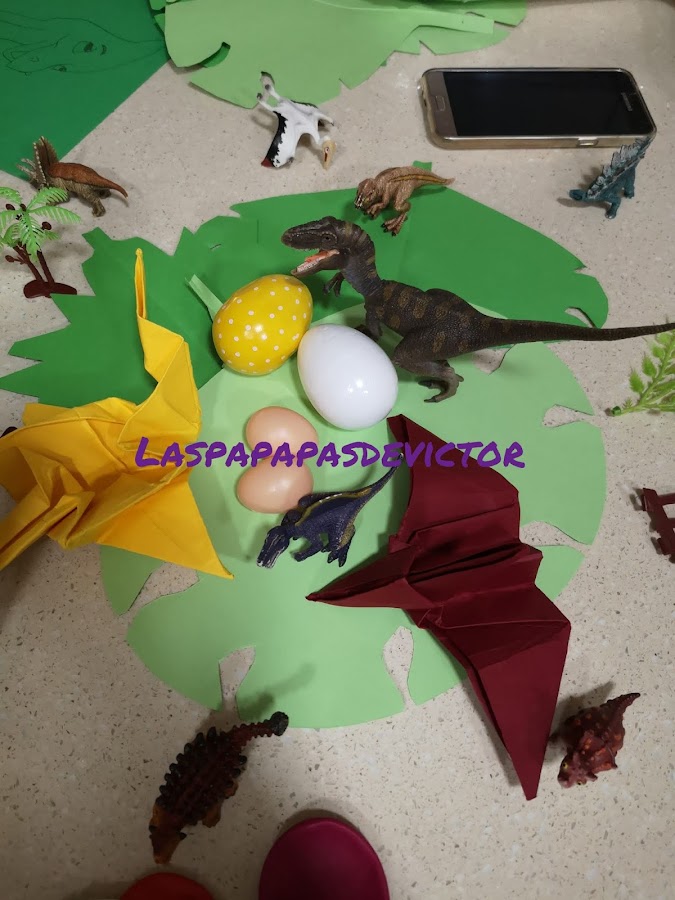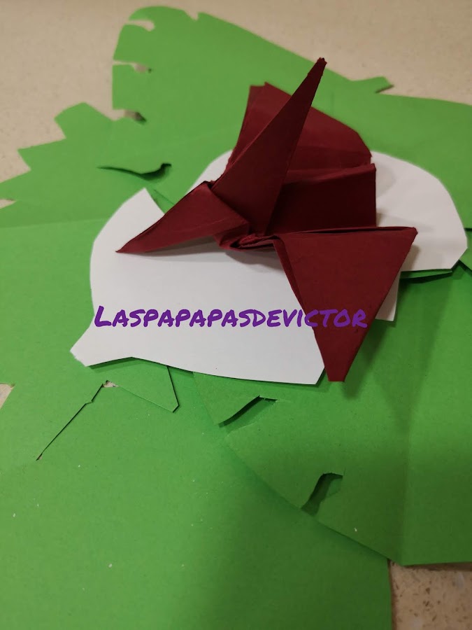 Es un pteranodon de origami y unas hojas echas de papel para la fiesta que Le hice el día de su cumple el 24 de enero.