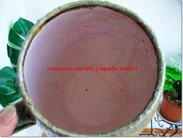 A estas dos jarras les tuve que poner una capa generosa de arena con cola para lograr que, al menos pueda poner en ellas un ramo de flores porque en vez de jarra era un colador.