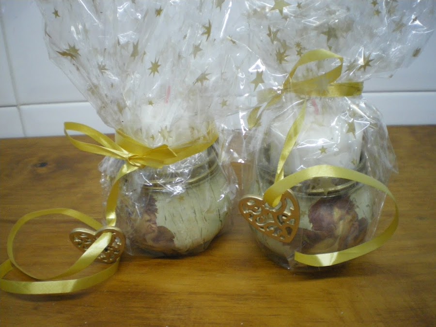 Los ya archifamosos "bocadelios", aquí versionados como portavelas, con unos angelotes preciosos y unos corazoncitos monísimos!!