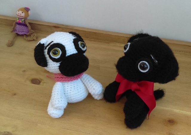 Tengo una compañera de trabajo que tiene un perrito pug, todo negro. Encontré este patrón lindo y le hice uno para complemento de regalo en su cumpleaños, es bello y tierno. Estás de acuerdo?