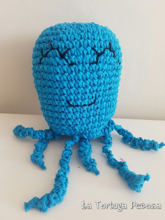 Este pulpito azul va para un peque que nació en Febrero y, que espero le ayude a tener muy felices sueños. Hecho con hilo de algodón color azul, me gusta porque es super azul.