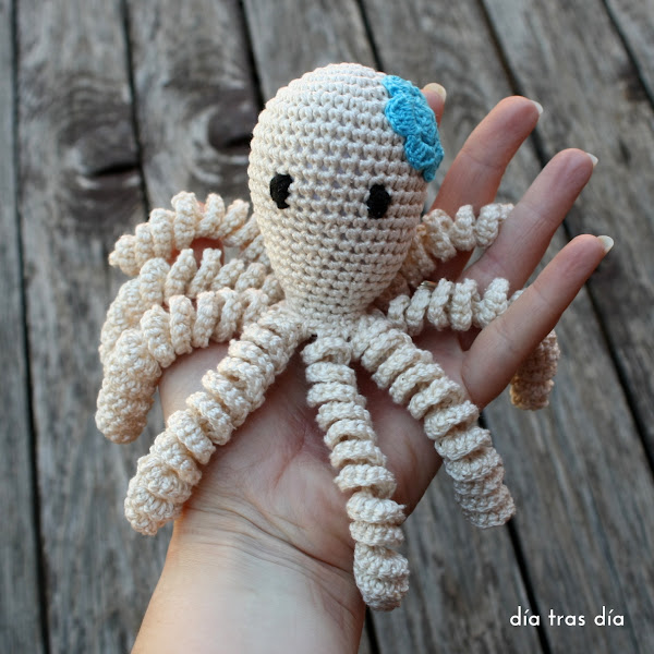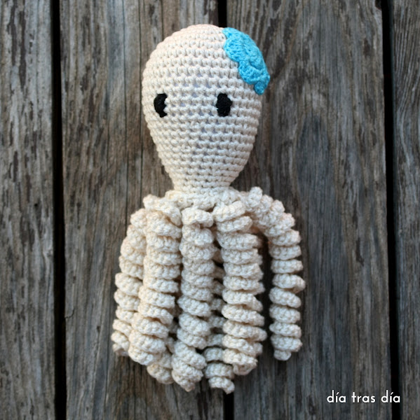 ¿Verdad que es simpático? Es tan gracioso, con sus tentáculos rizados Y no descarto seguir tejiendo pulpitos, porque me ha gustado mucho la experiencia y seguro que habrá algún bebé que lo agradecerá.
