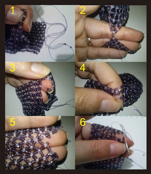 Paso 3: Lo pasamos por la 1ª transparente, y volvemos añadir 5 abalorios más y lo repetimos hasta el final.