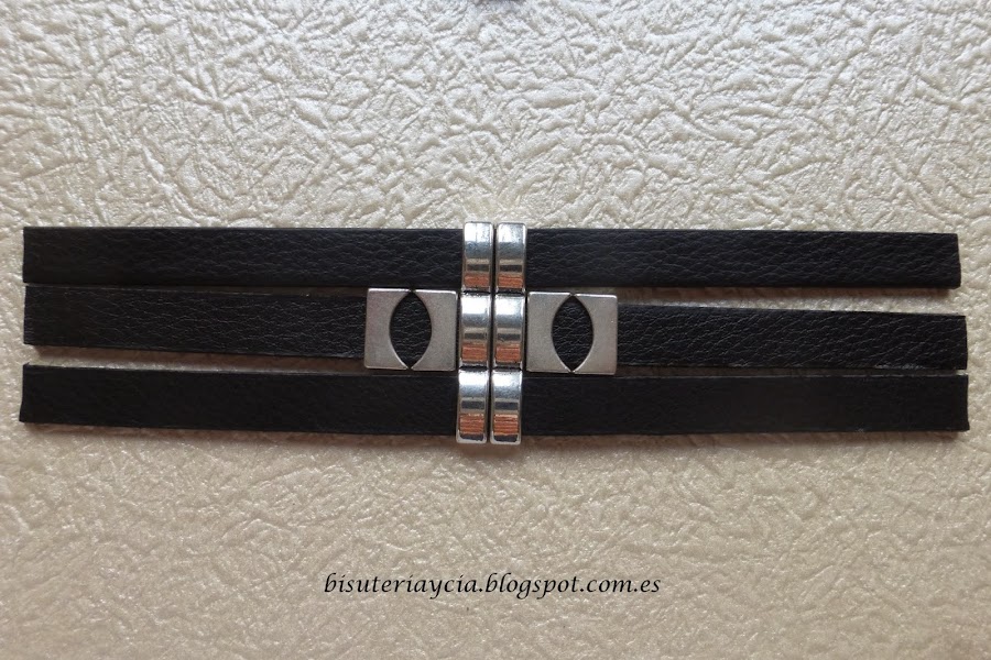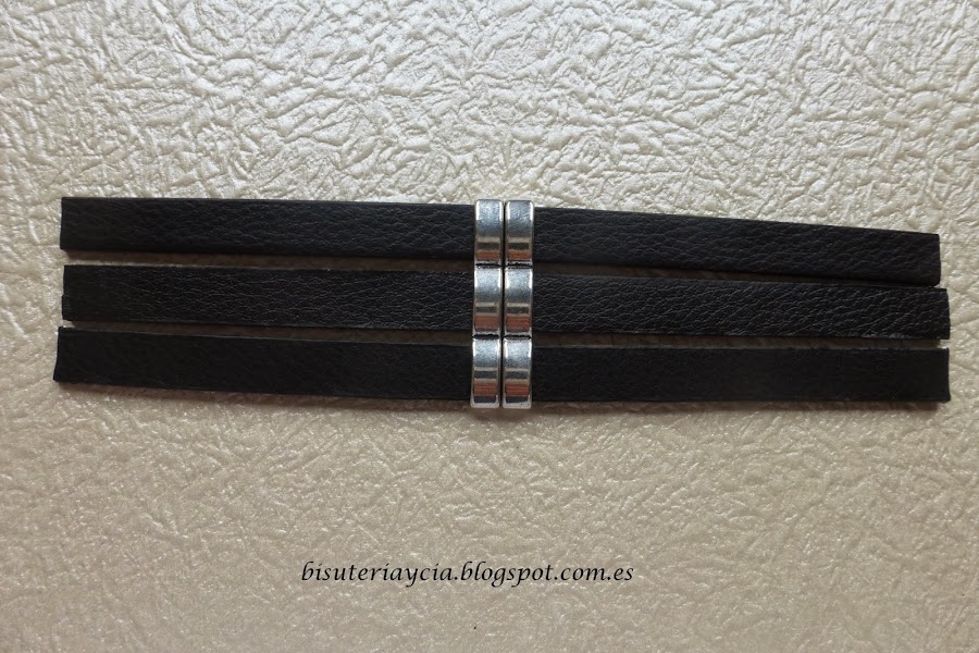 Empezaremos cortando las tiras de cuero, una vez las tengamos listas colocaremos las dos entrepiezas de tres pasos en el centro.