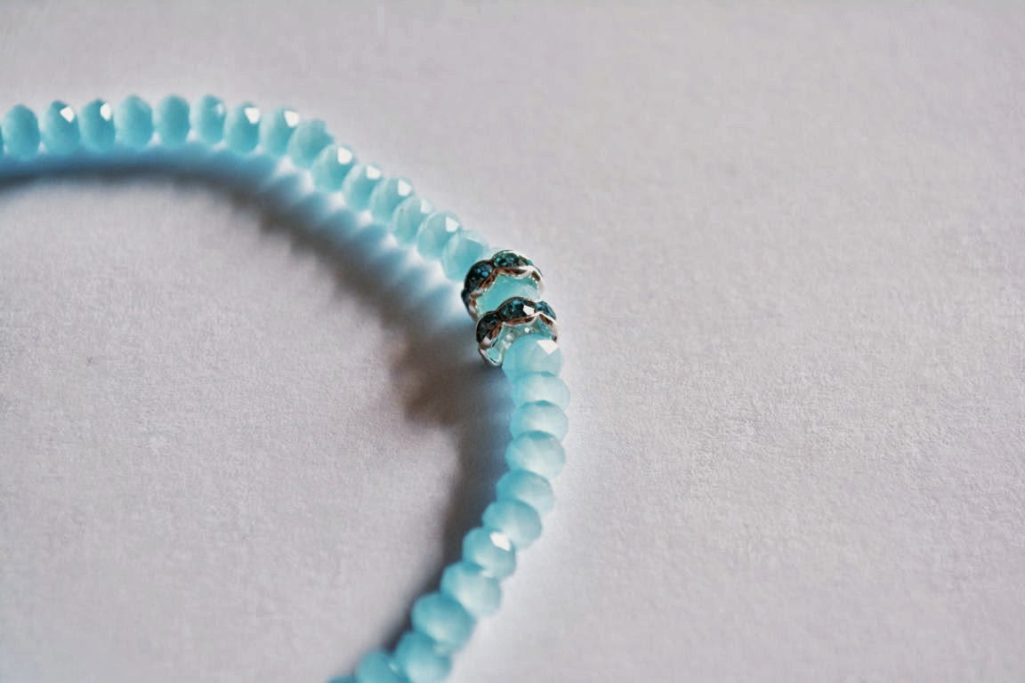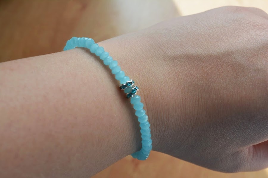 Os enseño esta pulserita tan mona en tonos aguamarina, muy apropiada para estos días soleados.