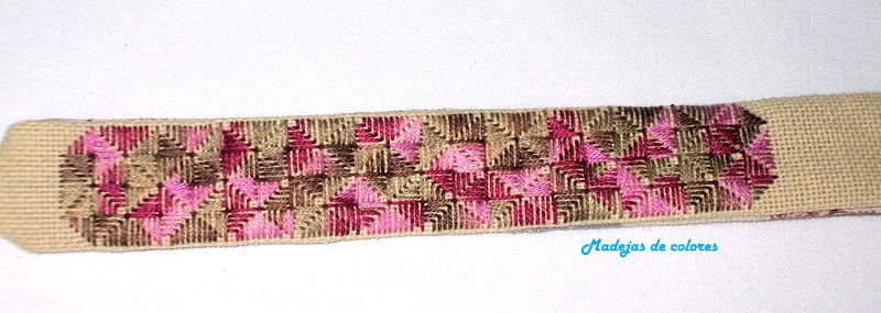 Por whatsapp le envié varias fotos de madejas para que eligiera un color y se decantó por una multicolor en tonos granates y verdes.