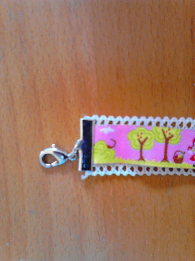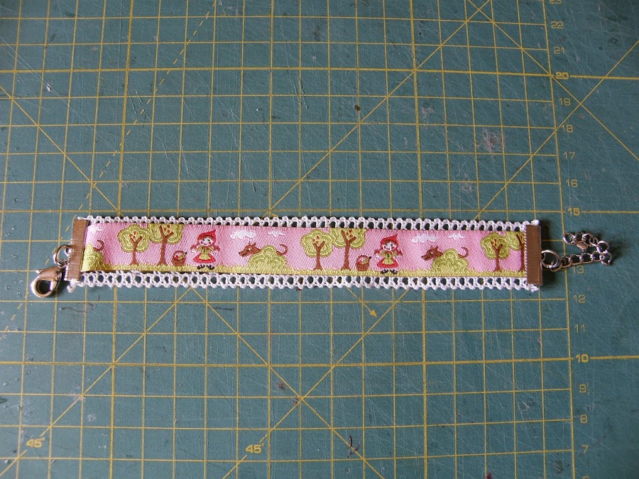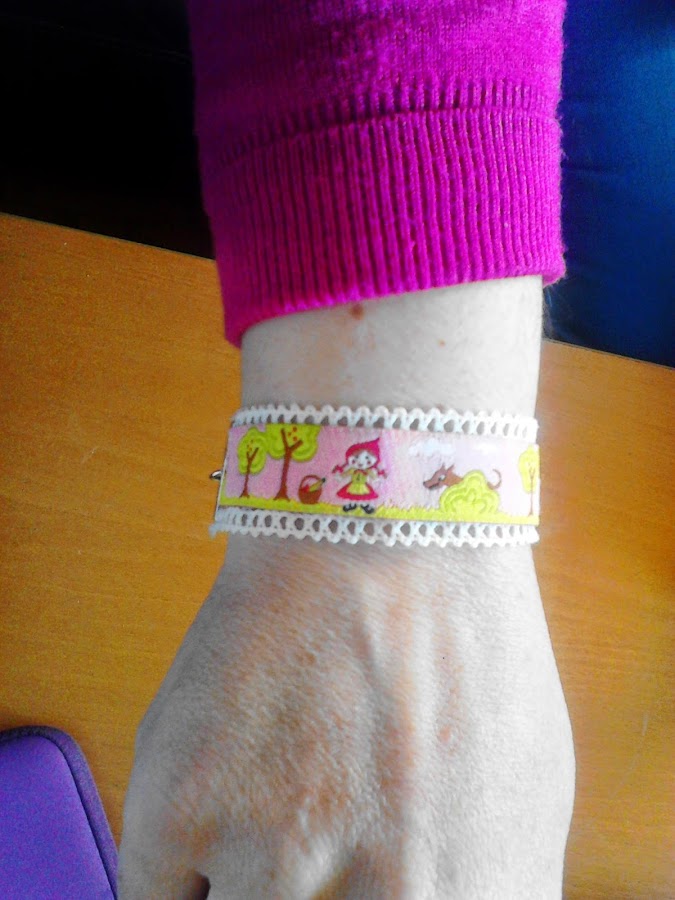 Ya sabéis la tontuna que tengo últimamente con los cuentos, empece con Caperucita y voy ampliando....,y empiezo a poner mis gustos en cositas....esta cinta de Caperucita me la regalo Loles y desde que la vi pensé en hacerme este tipo de pulsera, es muy sencilla, todo lo bonito que tiene es el dibujo de la cinta.