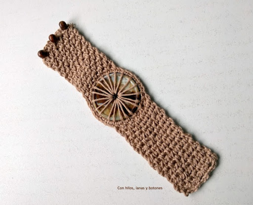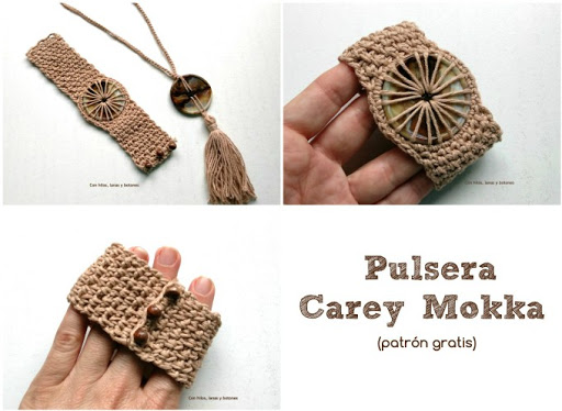 Si os animáis a tejer vuestra pulsera Carey Mokka me gustaría mucho verla. Podéis enviarme una foto por correo electrónico a conhiloslanasybotones@gmail.com o compartir con #hashtag y @perfil en redes sociales, #pulseraCareyMokka by @conhiloslanasybotones.