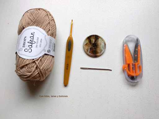 Hilo DROPS Safran. En mi caso en color beige (uni colour 21). No hace falta un ovillo entero, ni mucho menos, podéis usar restos que tengáis por casa.