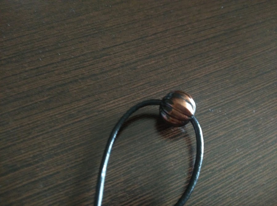 Haz un nudo, y otro que tenga una abertura lo suficientemente grande para que quepa tu cierre (en mi caso una cuenta) y que no tengas el peligro de que baile y se caiga.