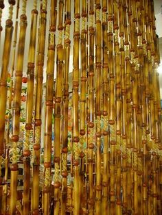 Como véis, no tiene ninguna dificultad, simplemente hay que juntar dos cadenitas y meter unas bolitas. Éstas también son recicladas de una cortina de bambú que tenía ya muy deteriorada por el sol y se rompió, así que guardé muchos palitos y bolitas para el "por si acaso". En principio las he dejado naturales pero tengo en mente hacer algunas pruebas pintándolas con colores alegres de cara al verano, e incluso, también con los palitos haré alguna forma geométrica, pero de momento no me ha dado tiempo a más, seguiré dándole a la cabeza, jejeje.
