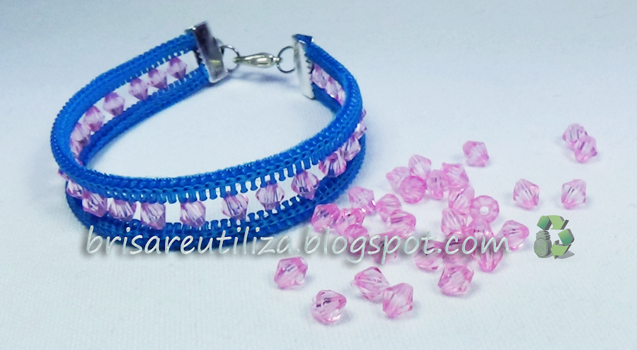 Hoy comparto esta idea muy fácil y económica, como pueden ver es una pulsera hecha con cremallera y cuentas, el resultado es precioso! ideal para regalar en cualquier ocasión.