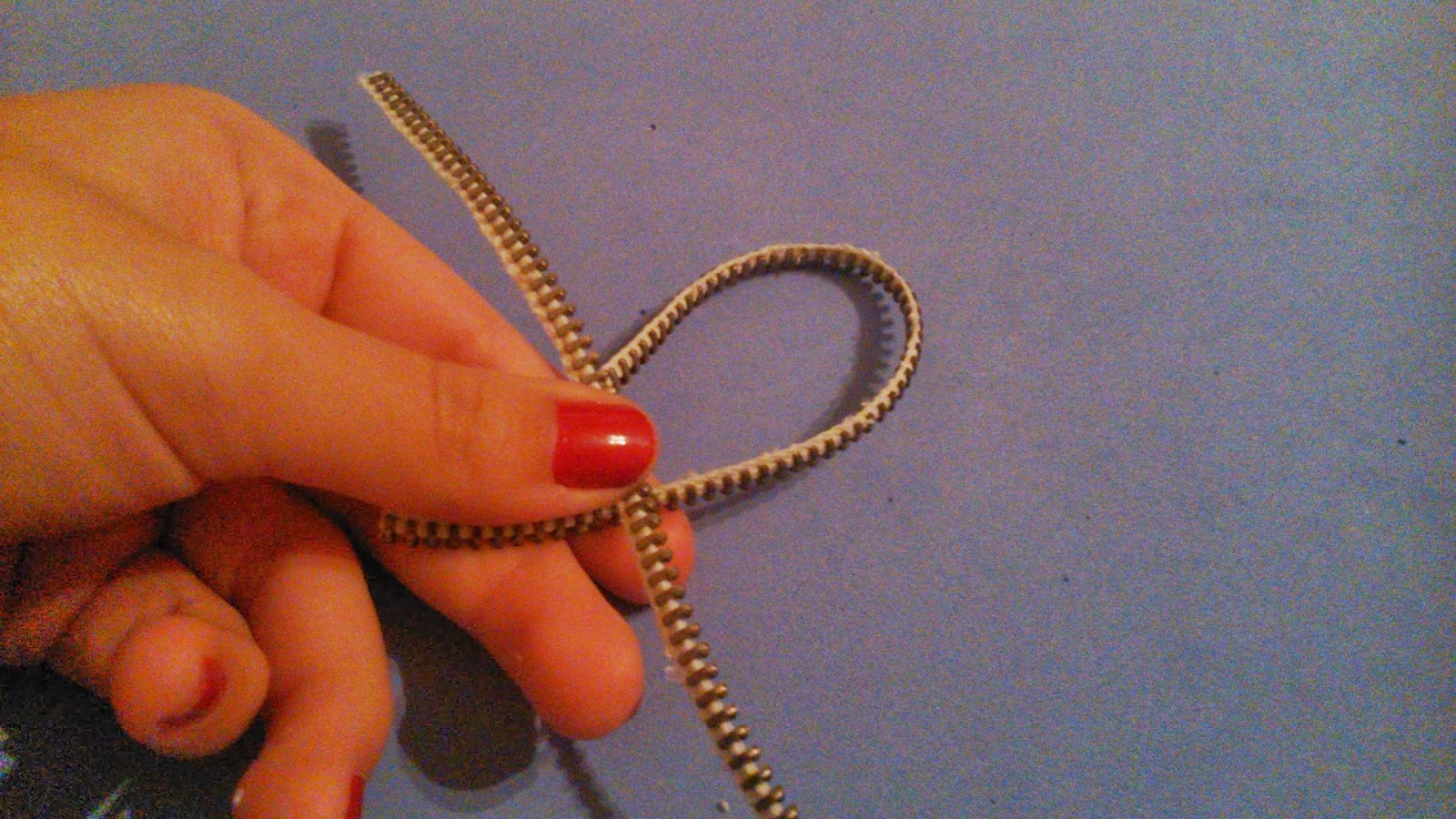 3. Cogemos una de las cremalleras y la doblamos, superponemos la otra y pasamos los extremos entre medias de la primera. La explicación es un poco difícil pero con las fotos os quedará más claro.