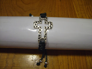 Pulsera con cruz hueca de zamak y cordón negro