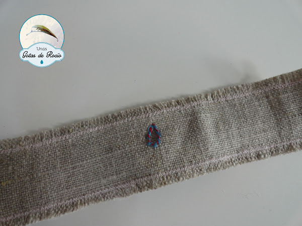He usado lino rústico y tres madejas de hilos matizados en rosa, verde y azul. El contorno rematado con un pequeño zig zag a máquina y los bordes deshilachados.