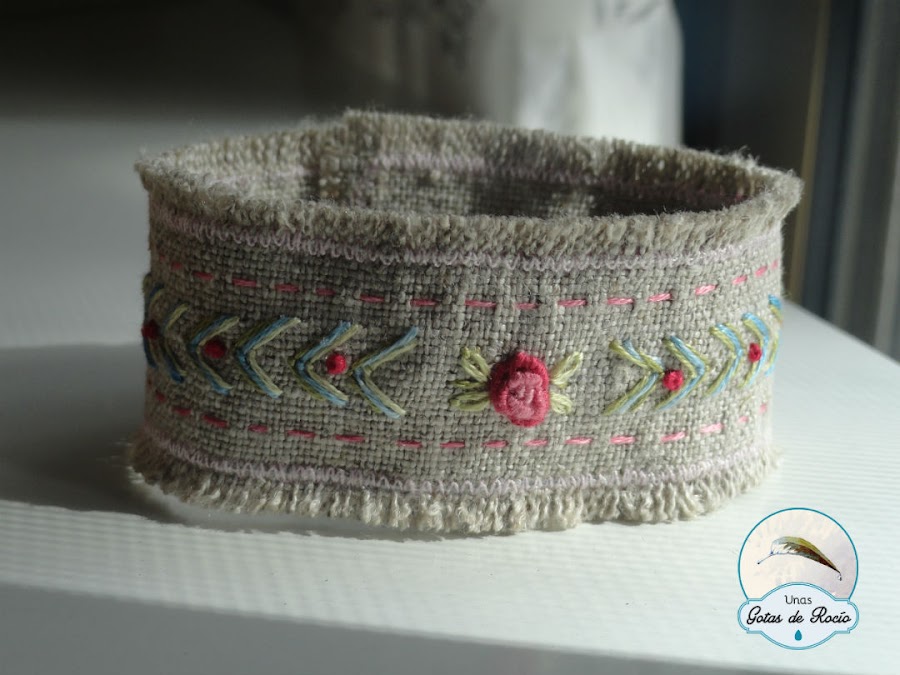 Un día, intentando hacer una correa para el reloj, tal como vi que las hacía "Dulces Pilukas", modifiqué el modelo original y terminé bordando una pulsera que publiqué en Instagram. La idea me gustó y la perfeccioné para regalársela a una amiga por su cumpleaños. Ya ella me dirá qué fallos tiene y así corregiré lo que menos le guste o le incomode en su uso.