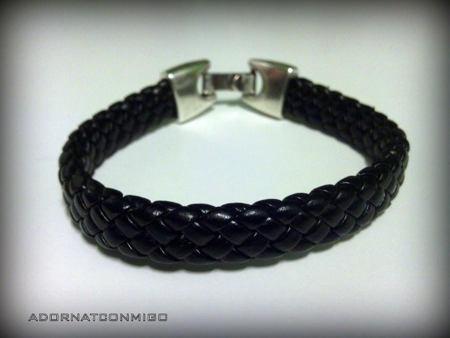 Para todas las que os guste las pulseras sencillas, aquí os traigo unas de cuero trenzado con un abalorio, son muy sencillas y cómodas de llevar. De uso diario e informal. Yo las he hecho en color neg ...