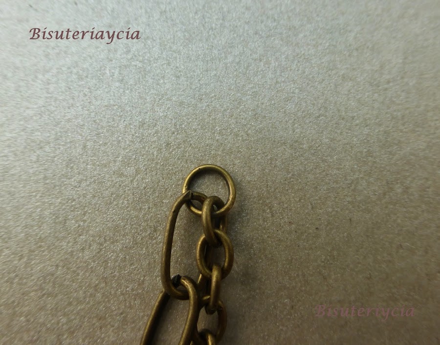 Un extremo, con una anilla mediana, que nos permita unir las dos cadenas y a la vez se pueda unir con el cierre.