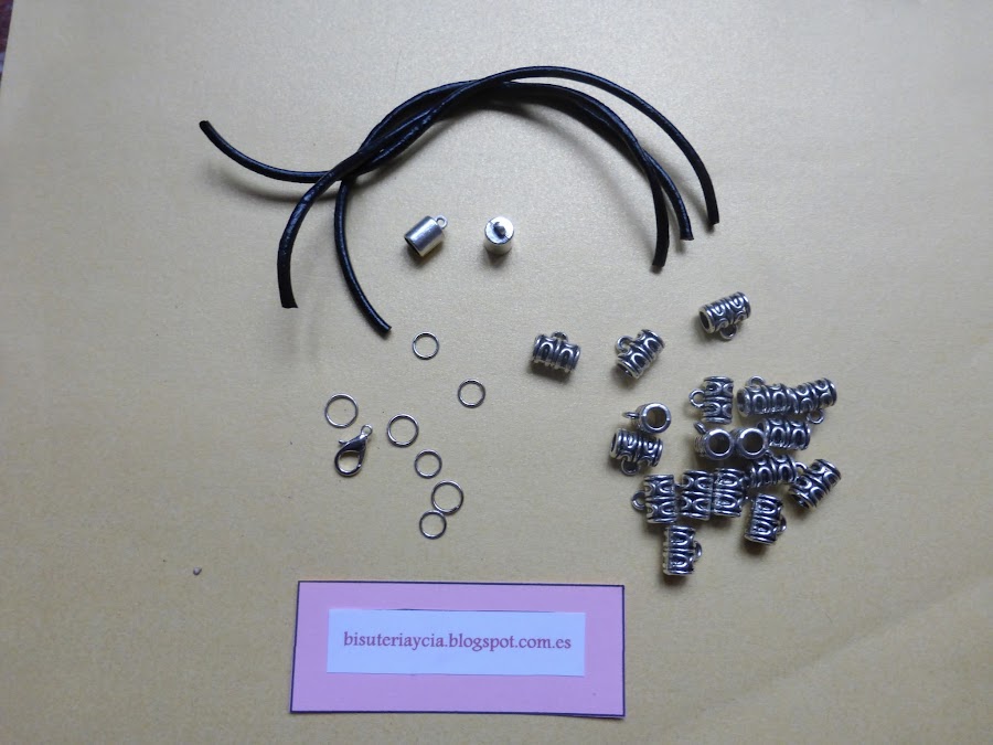 Empezaremos cortando 3 tiras de cuero negro, la medida sera la de nuestra muñeca o de la persona para la que hagamos la pulsera.