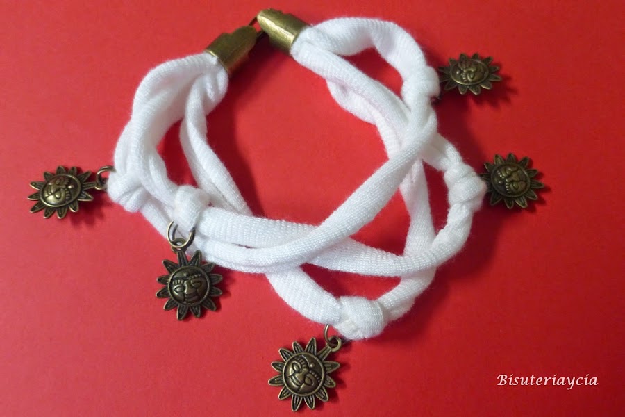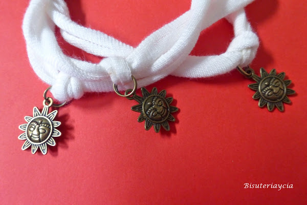 La pulsera que haremos hoy combina los nudos con pequeños colgantes en forma de sol.