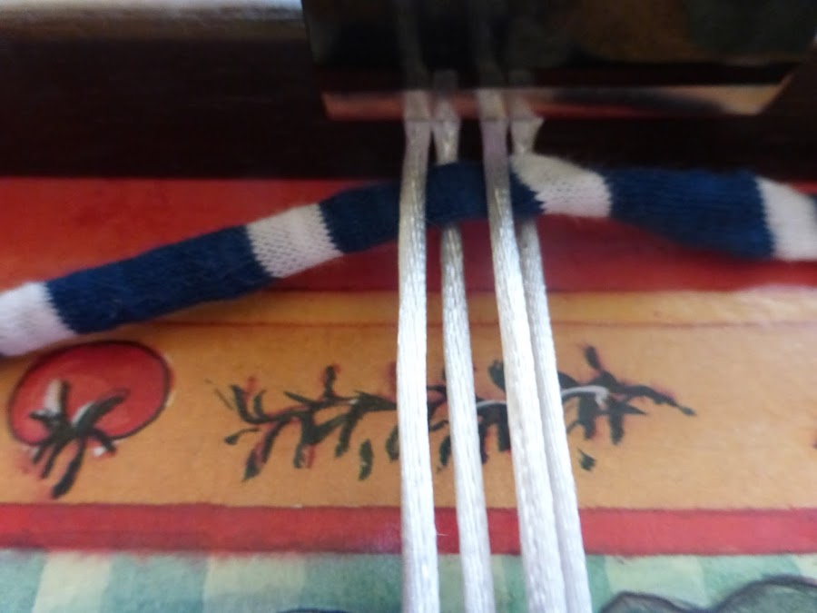 Empezaremos fijando la cola de ratón a una bandeja o lo que tengáis a mano, tenemos que montar un mini telar.