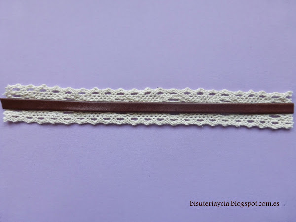 Empezaremos pegando el cuero plano encima de la cinta de encaje.