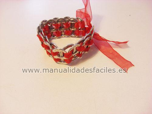 - 20 anillas reciladas de lata- 1 metro de cinta de organza de 1 cm aproximadamente
