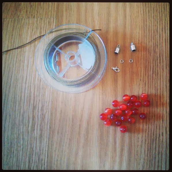 Inserta las bolas en la cuerda, midiéndote la muñeca hasta que sea de tu medida, añade los cierres con un poco de pegamento para que se quede fijado.